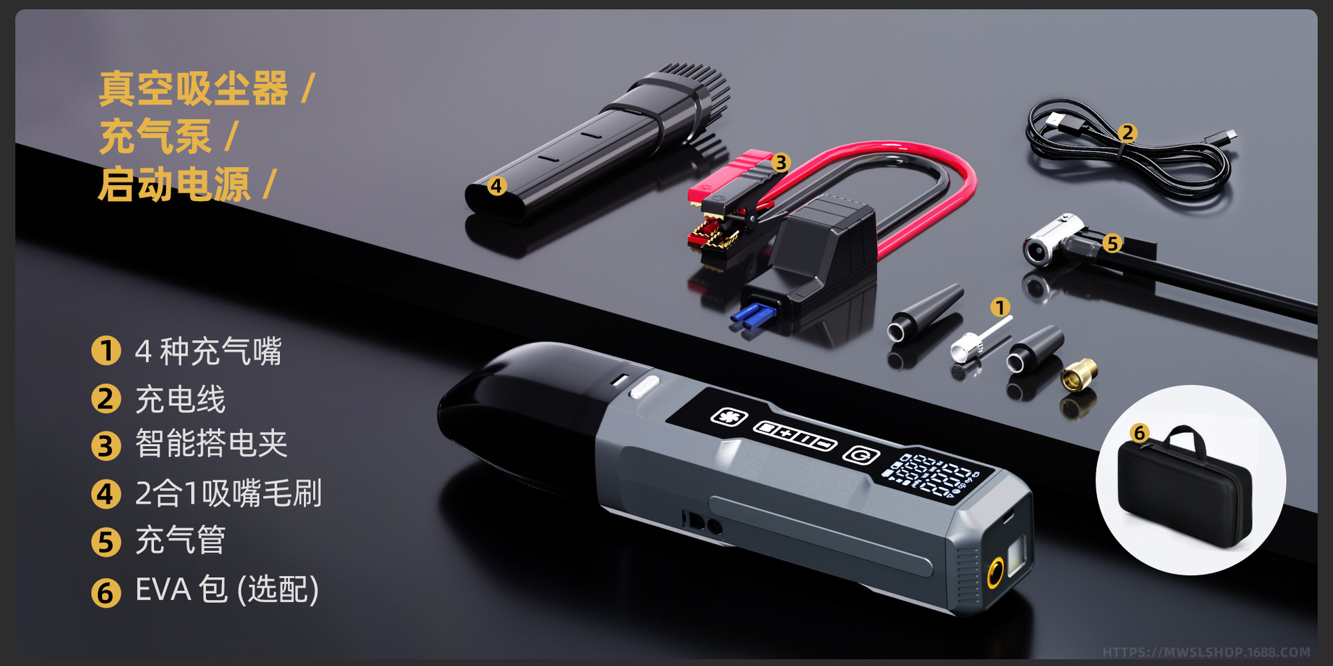(con bolsa de almacenamiento) aspirador de polvo + inflador + medición de presión de neumáticos + iluminación + puesta en marcha