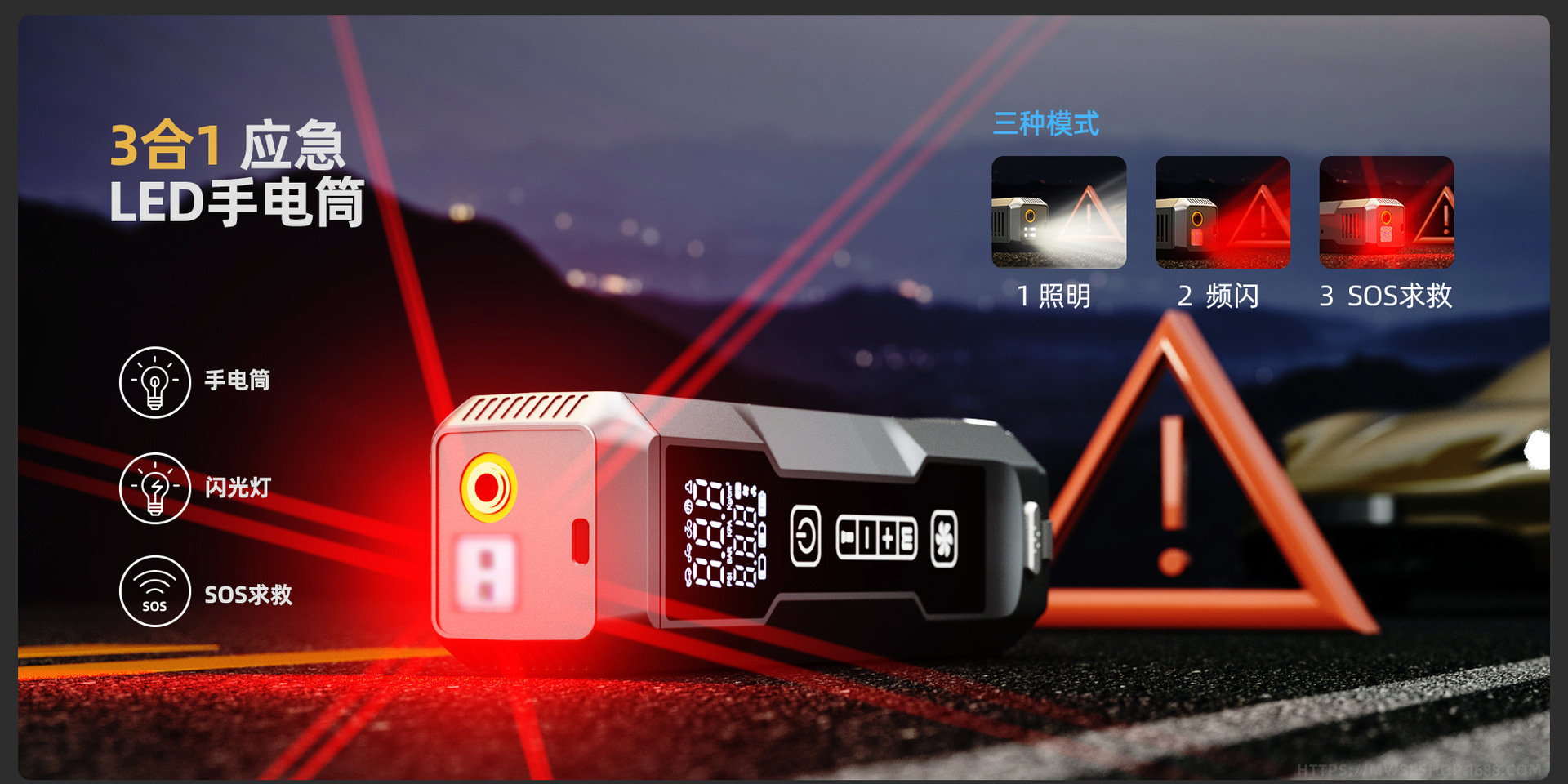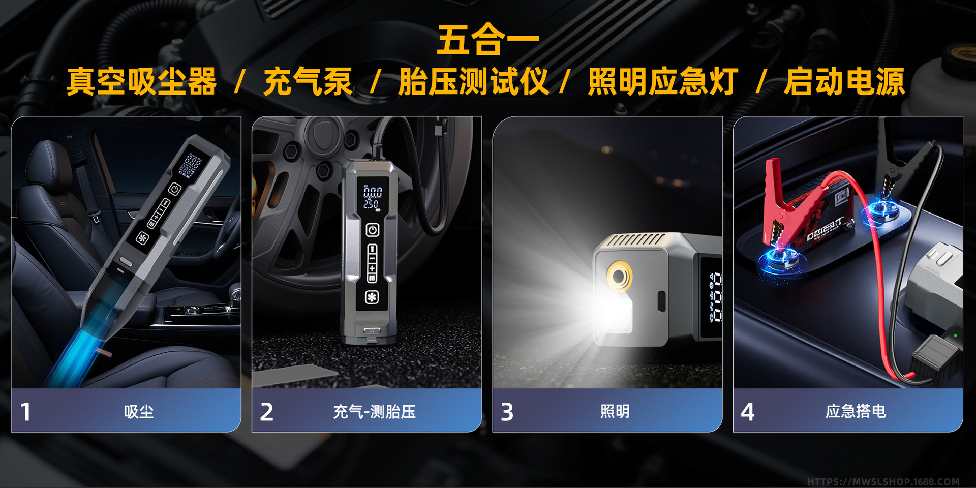 Fuente de alimentación de arranque de emergencia para automóvil multifuncional portátil limpiador de polvo bomba de aire inflada lámpara de iluminación 5 - en - 1