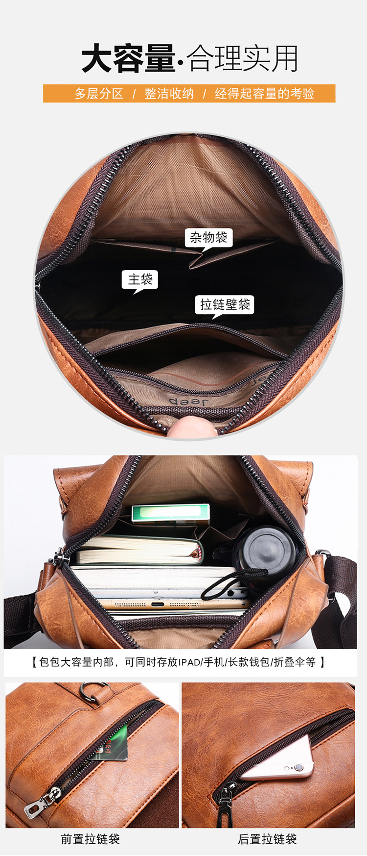 Mochila informal para viajes de negocios, bolso de hombro tipo bandolera, bolso vertical para hombre, bolso de cuero de gran capacidad, transpirable y resistente al desgaste