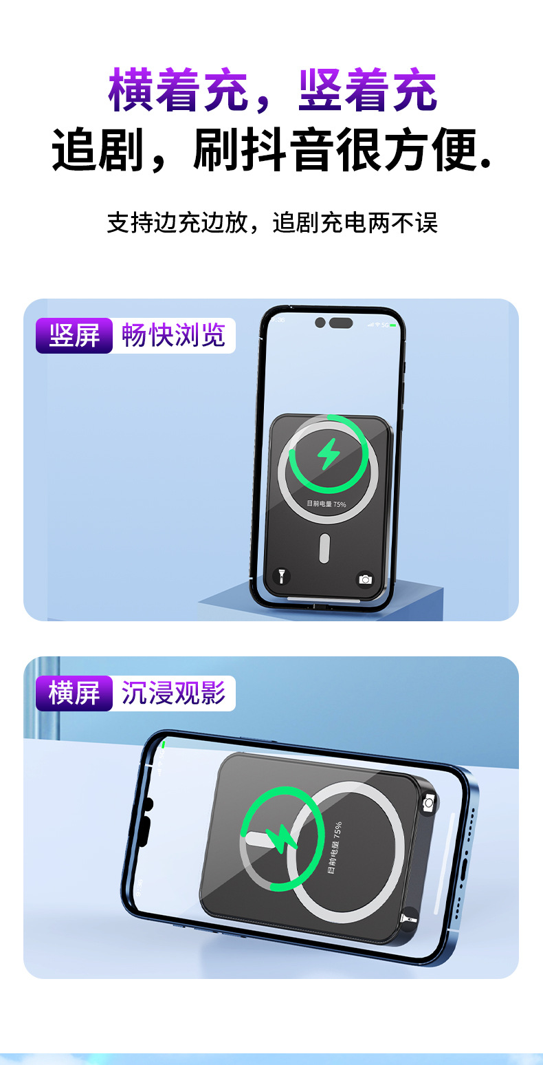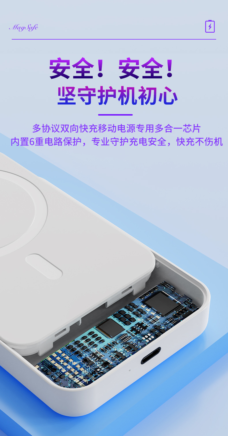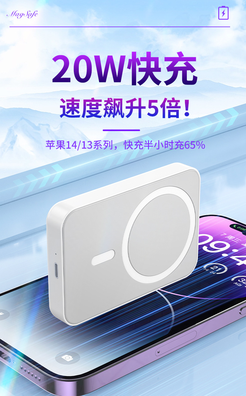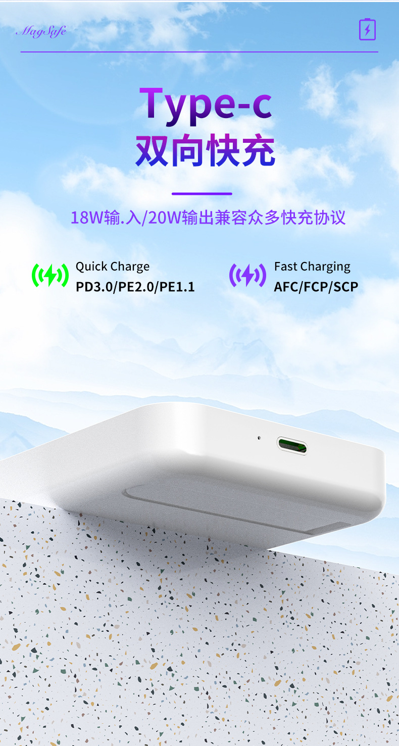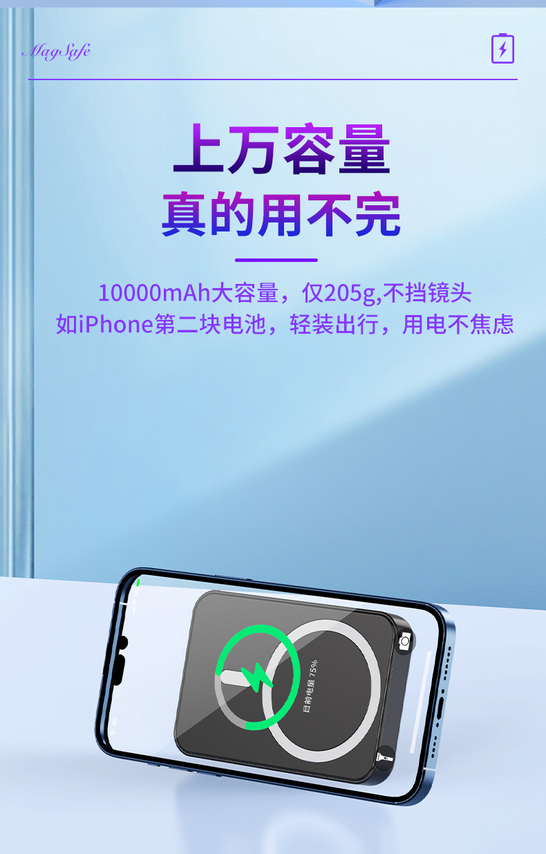 El nuevo soporte magnético de color degradado Magsafe, banco de energía inalámbrico, banco de energía móvil portátil, mini 10000 mAh