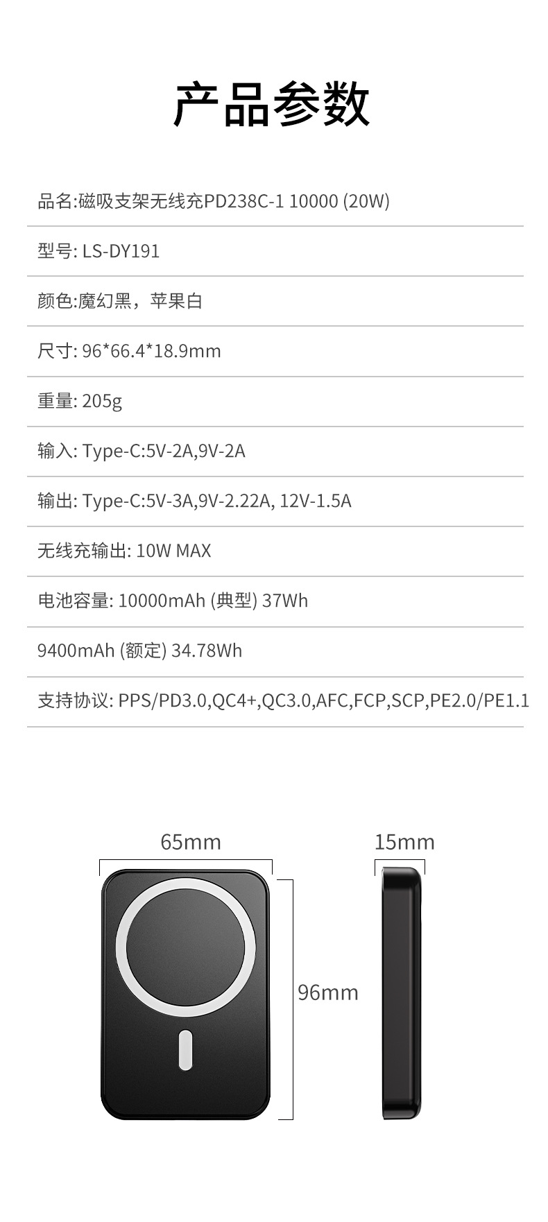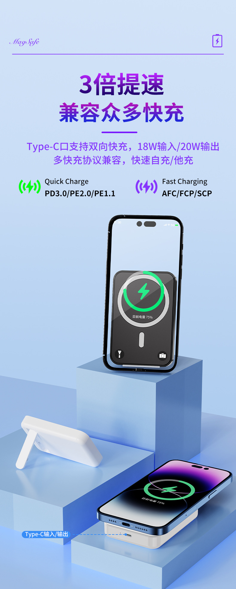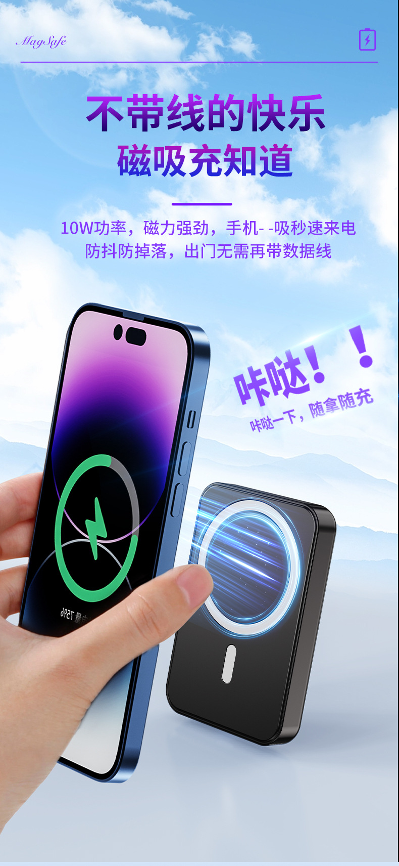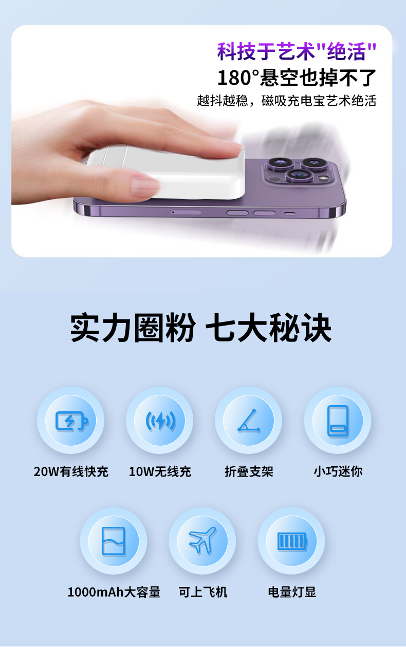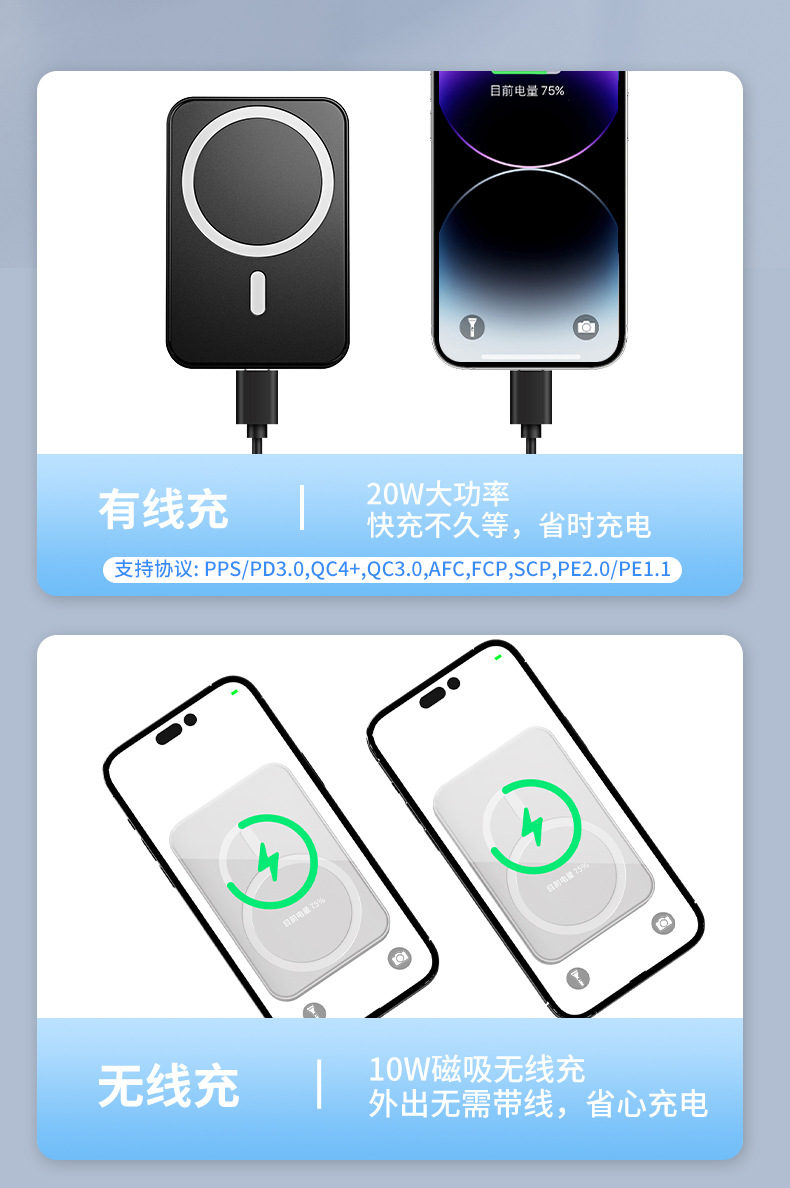 El nuevo soporte magnético de color degradado Magsafe, banco de energía inalámbrico, banco de energía móvil portátil, mini 10000 mAh