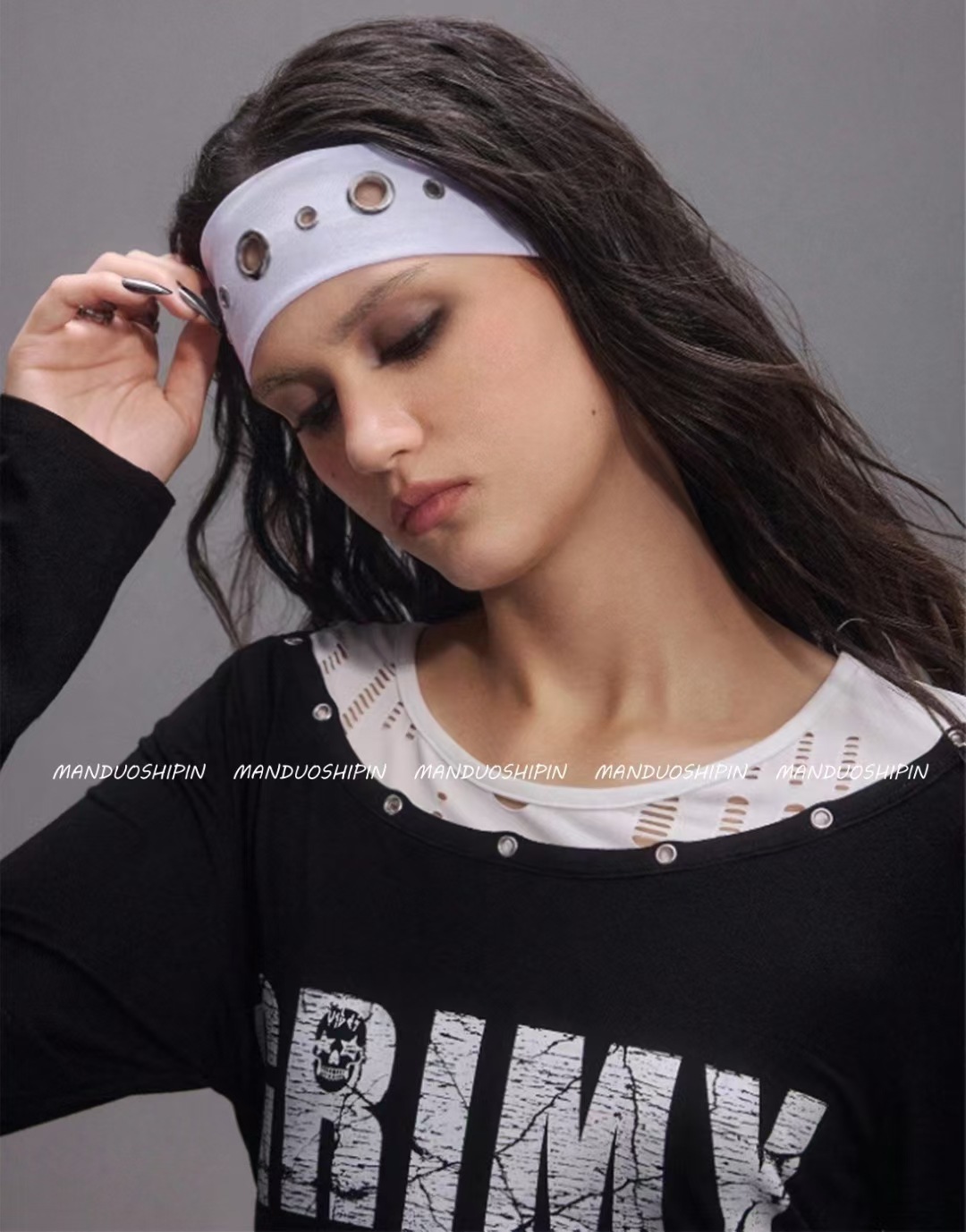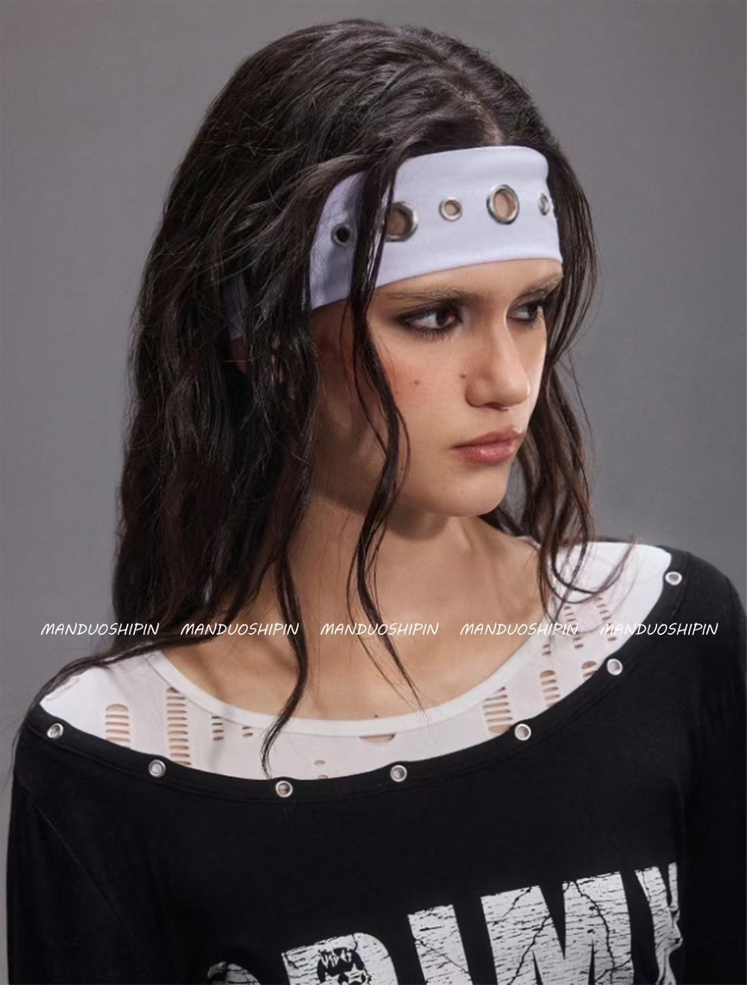 Bandas de pelo punk transfronterizas bandas de pelo elásticas de tela de rock festival de música agujero bandas de pelo retro dulces y frescas bandas de cabeza de color sólido
