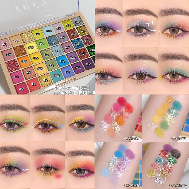 Escenario de maquillaje de sombra de ojos de color multicolor sequinilla polvo flash maquillaje especial azul verde rosa cos maquillaje nuevo
