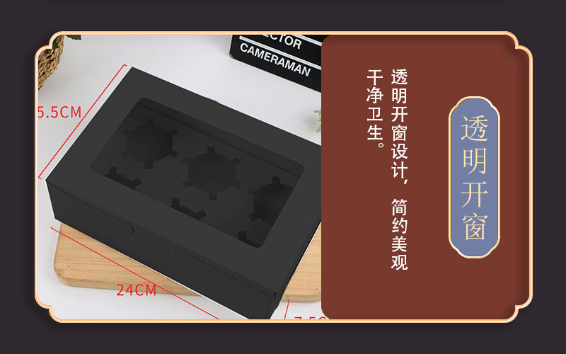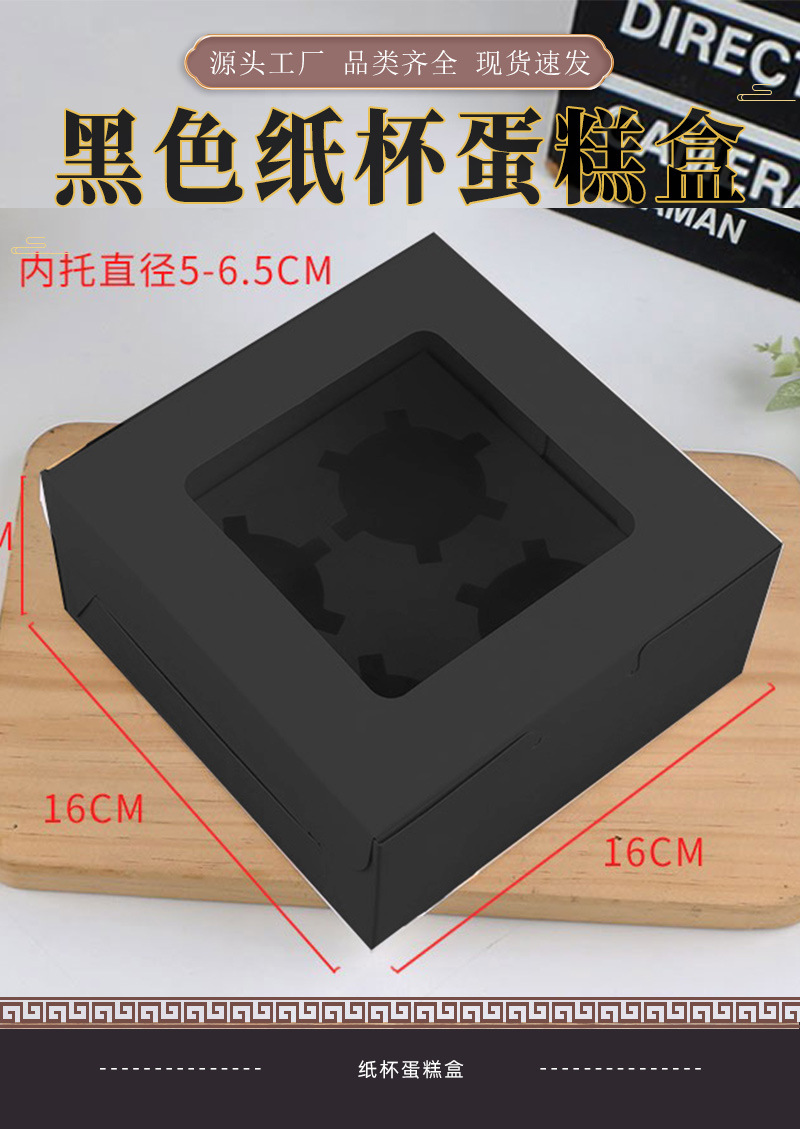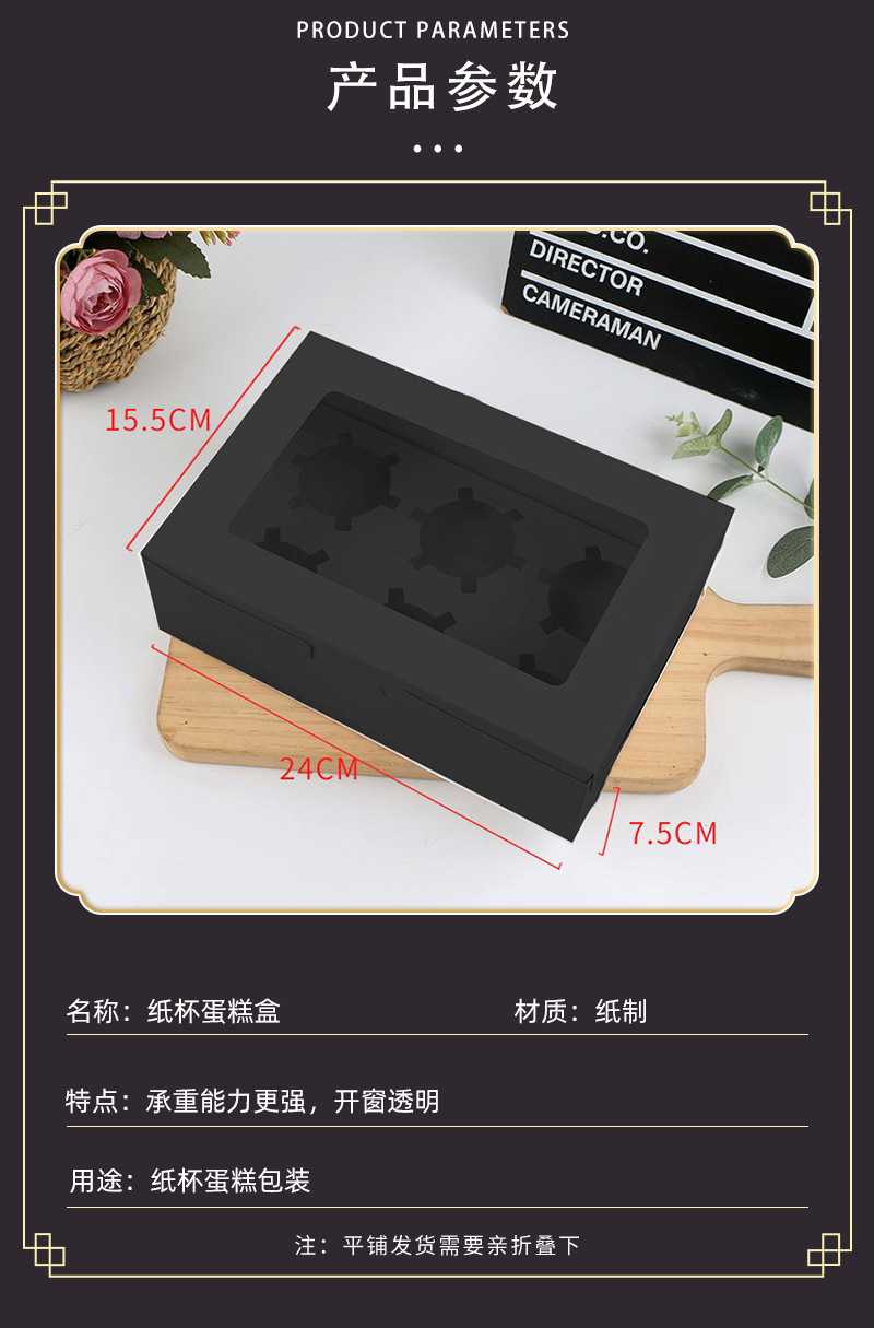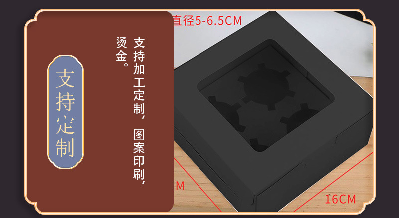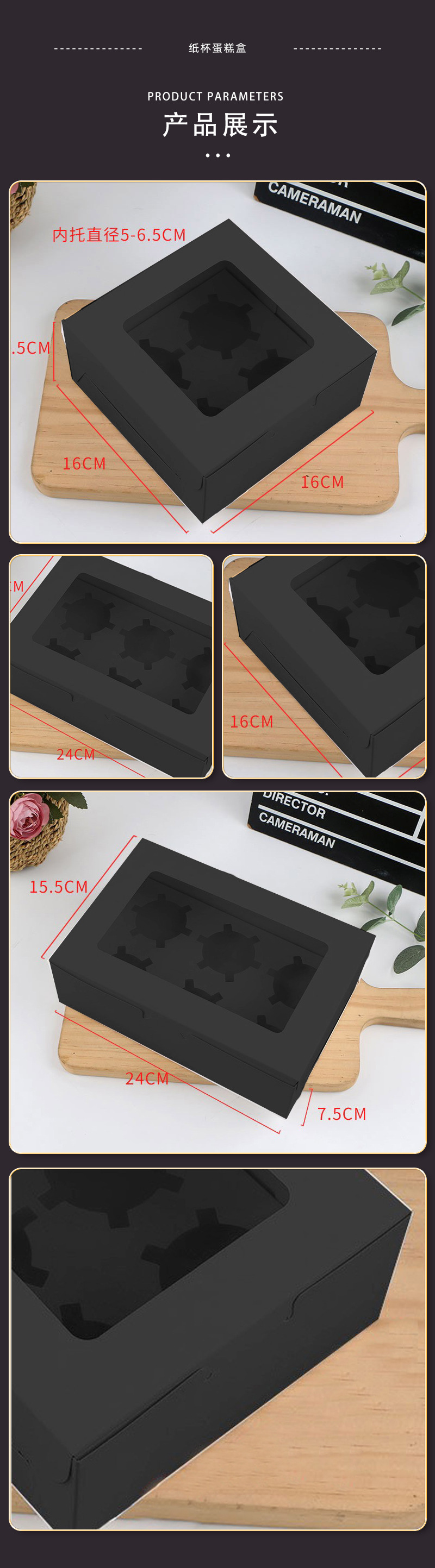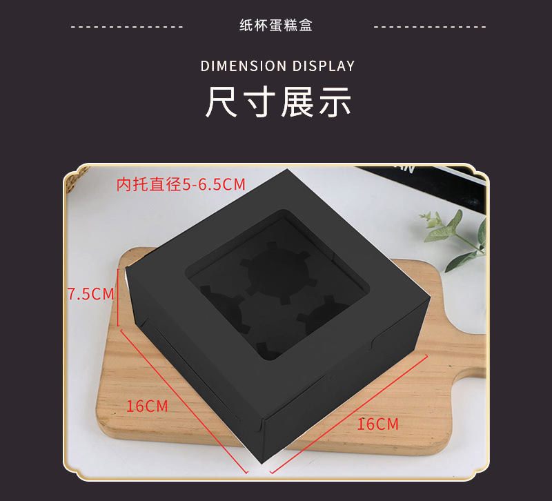4/6 PCs taza de papel caja de embalaje caja de cartón negro muffin taza de pastel caja de tarta de huevo al por mayor