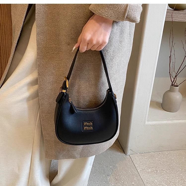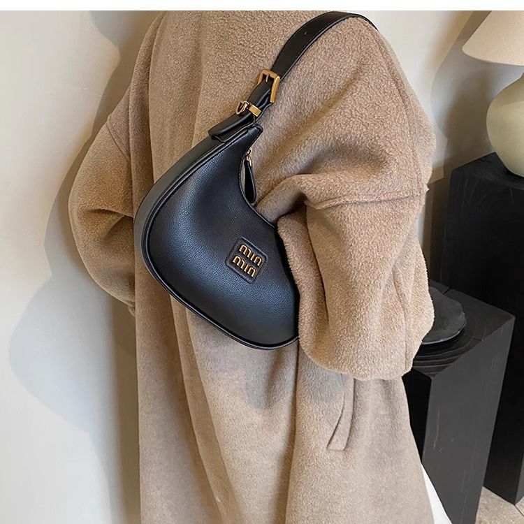 Bolso pequeño para mujer 2025 nueva bolsa de media luna bolsa de bola de masa de otoño e invierno bolso de mensajero negro de viaje bolso de la axila de mano