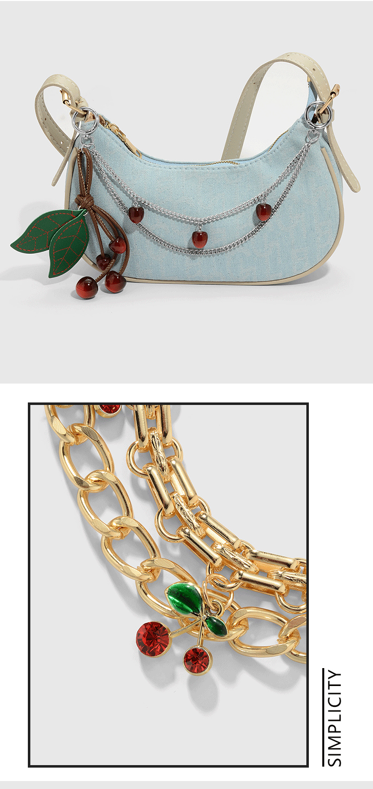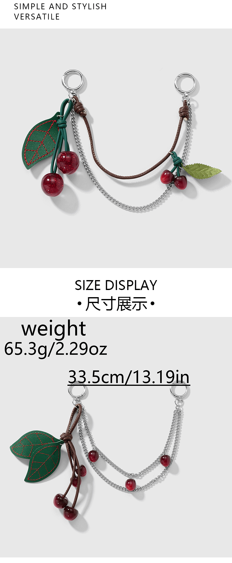 | Colores | 1 colgante de cereza de cadena dorada,1 colgante de cereza flash fino de cadena plateada,1 colgante de cereza de cadena plateada |