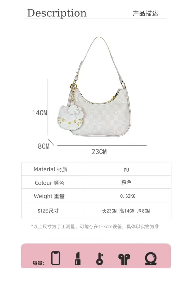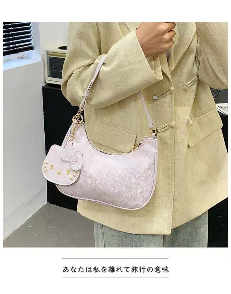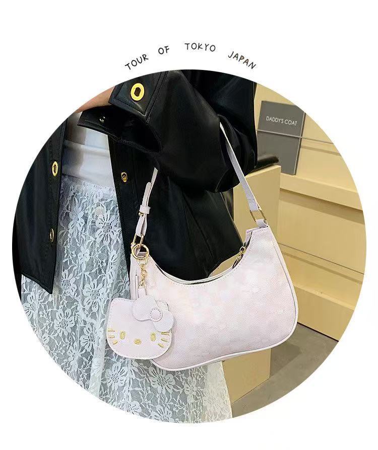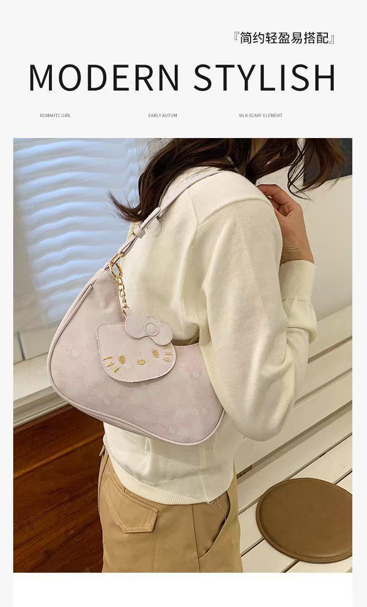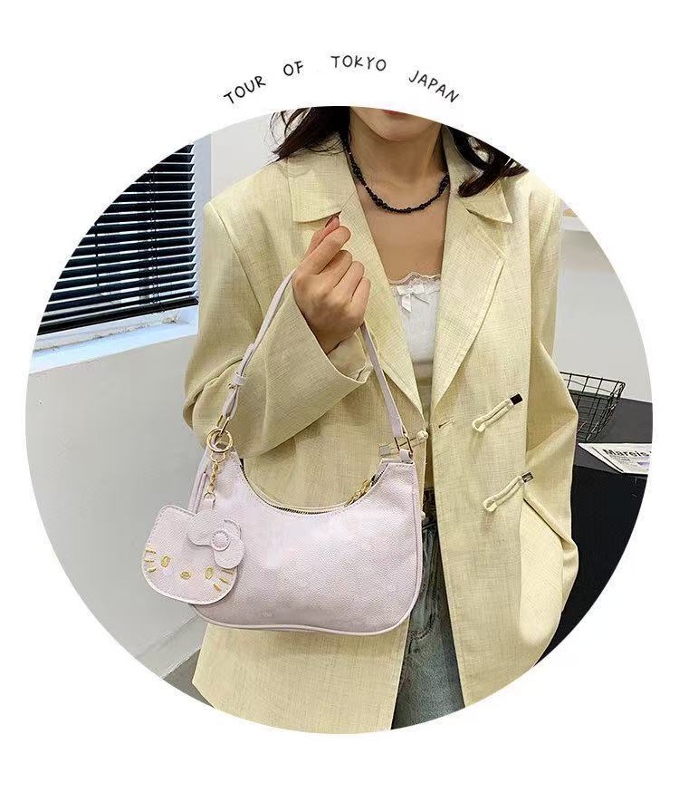 Moda de dibujos animados 2025 nuevo bolso de axilas de gato kt diseño de nicho coreano bolso de media luna de un solo hombro mochila de estudiante