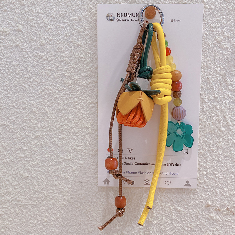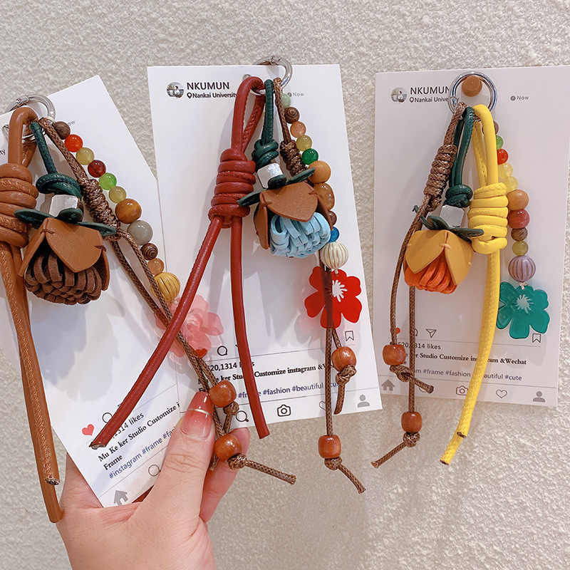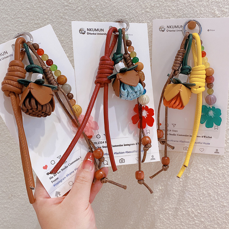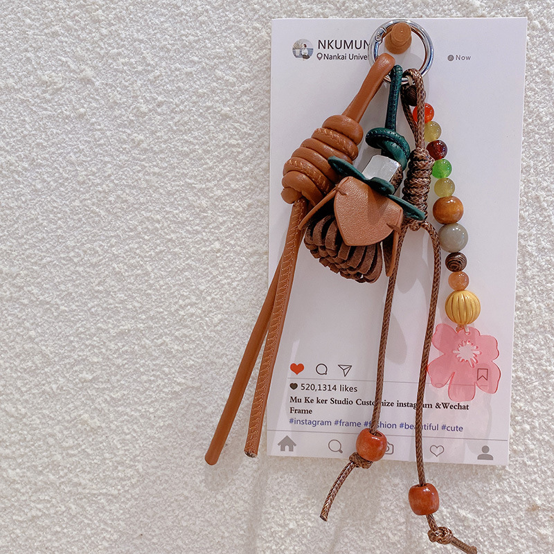 HD9217A04 cadena 05 estrellas otoño y invierno con la misma bola de flores de cuero PU llavero de coche colgante bolso colgante