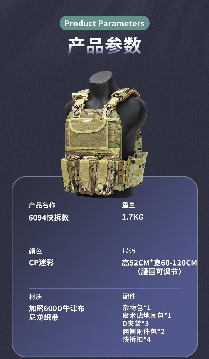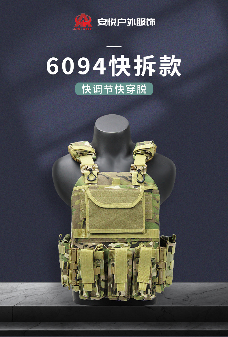 6094 chaleco táctico de desmontaje rápido chaleco de protección multifuncional para equipos al aire libre de camuflaje