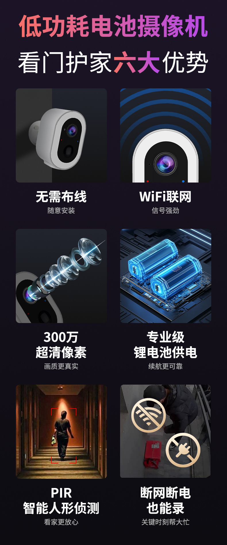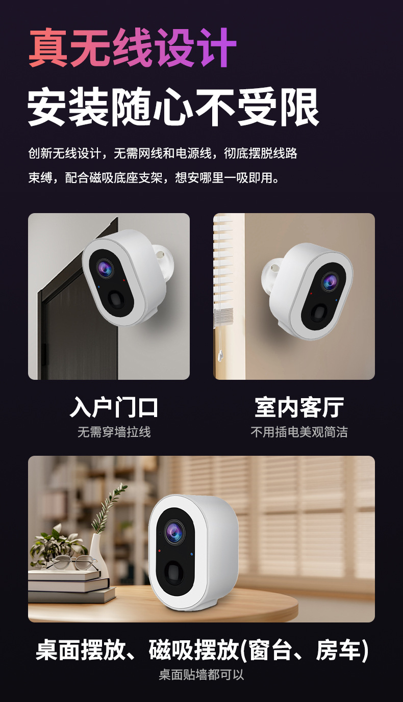 Cámara de vigilancia transfronteriza dedicada para interiores y exteriores HD Night Vision Cámara inalámbrica remota remota sin enchufe y sin perforación