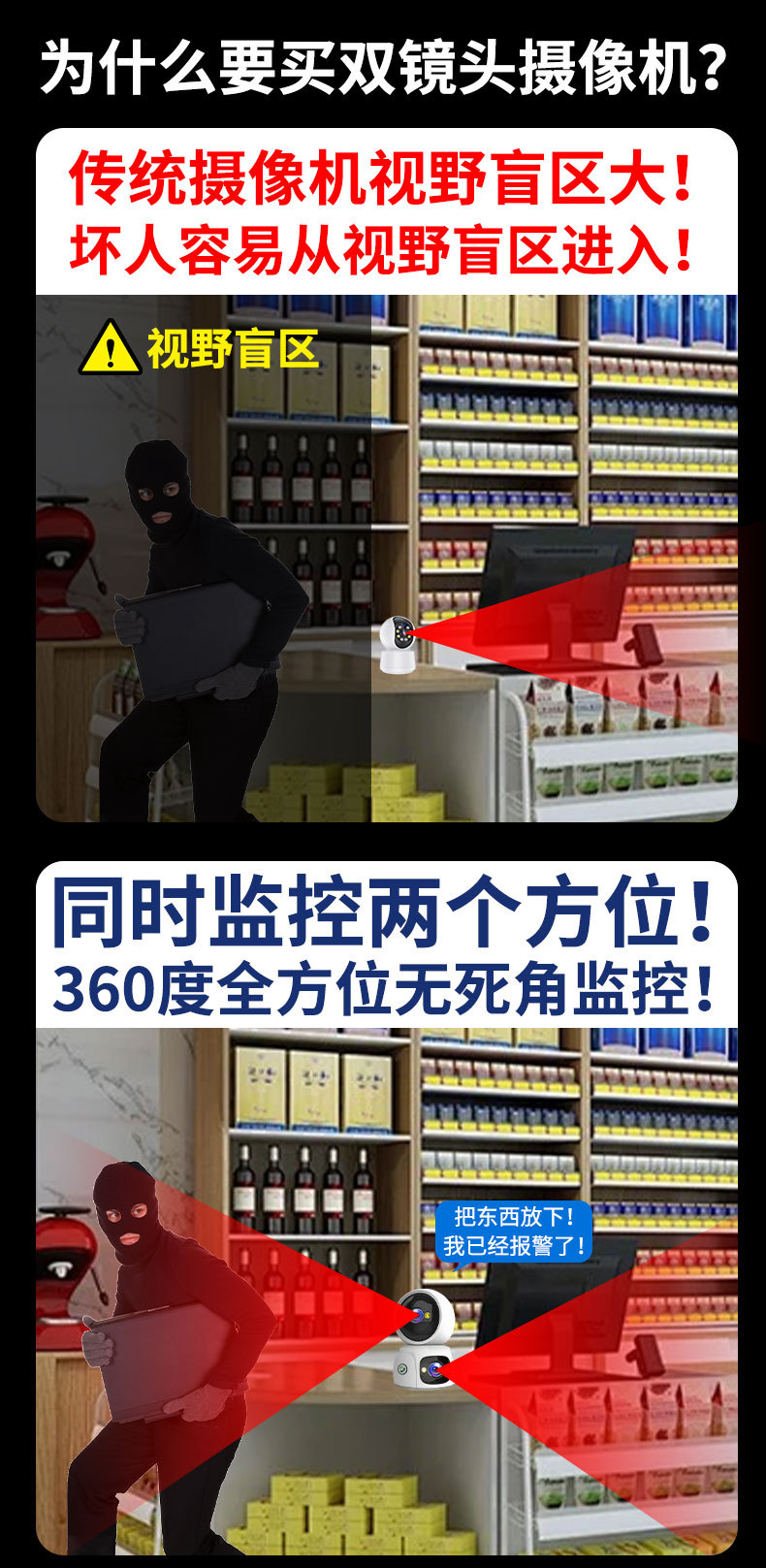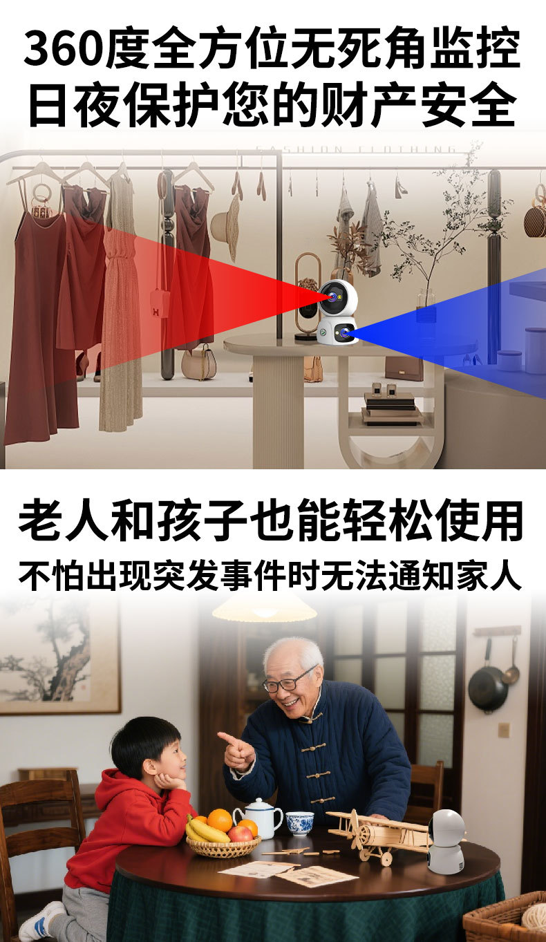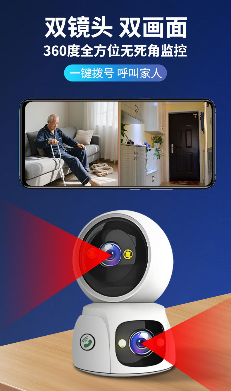 Ventas directas de fábrica WIFI interior de doble lente de alta definición de visión nocturna a color 1080P cámara doméstica shaker