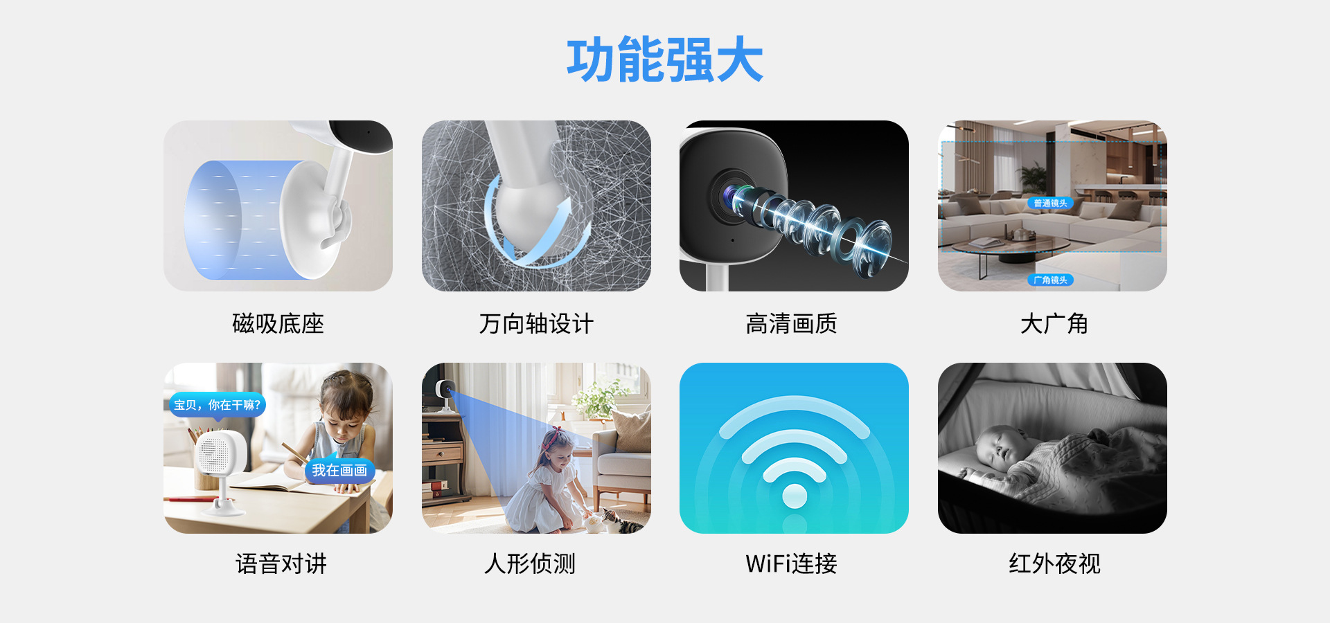 Cámara de vigilancia WIFI transfronteriza HD visión nocturna remota inalámbrica 360 grados doméstica AI inteligente cámara de absorción magnética