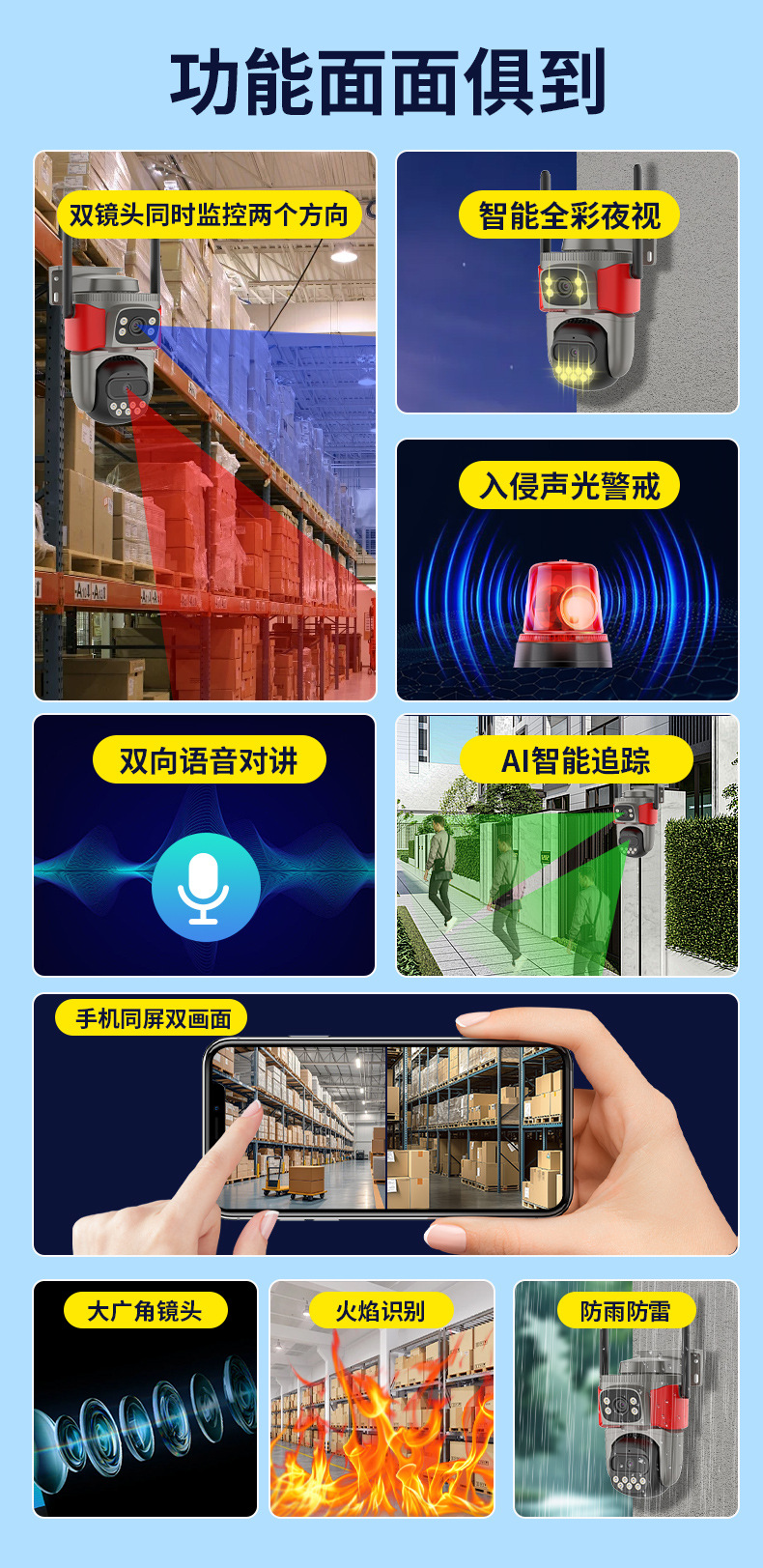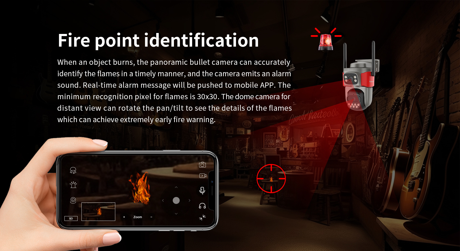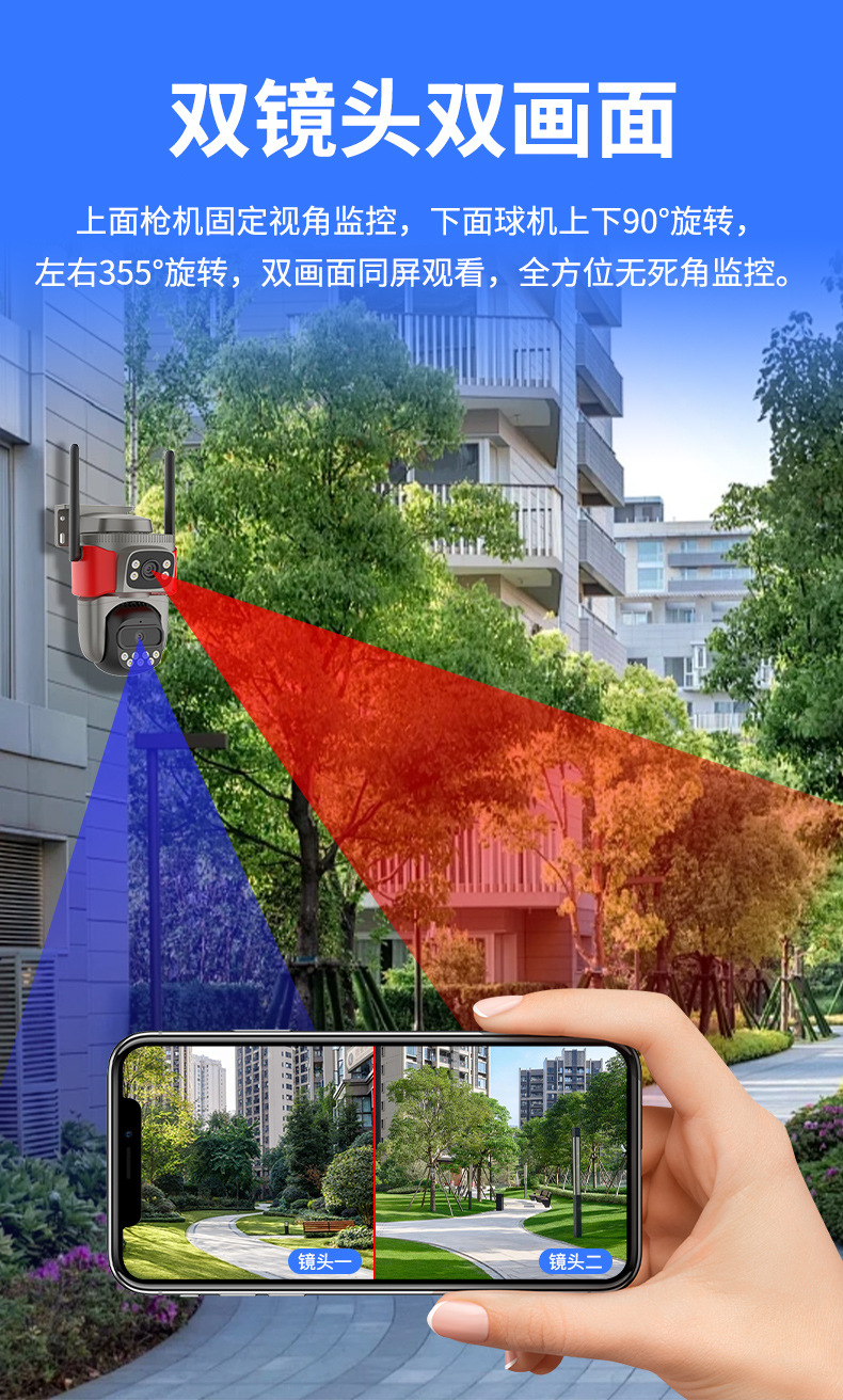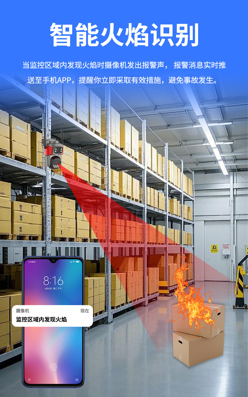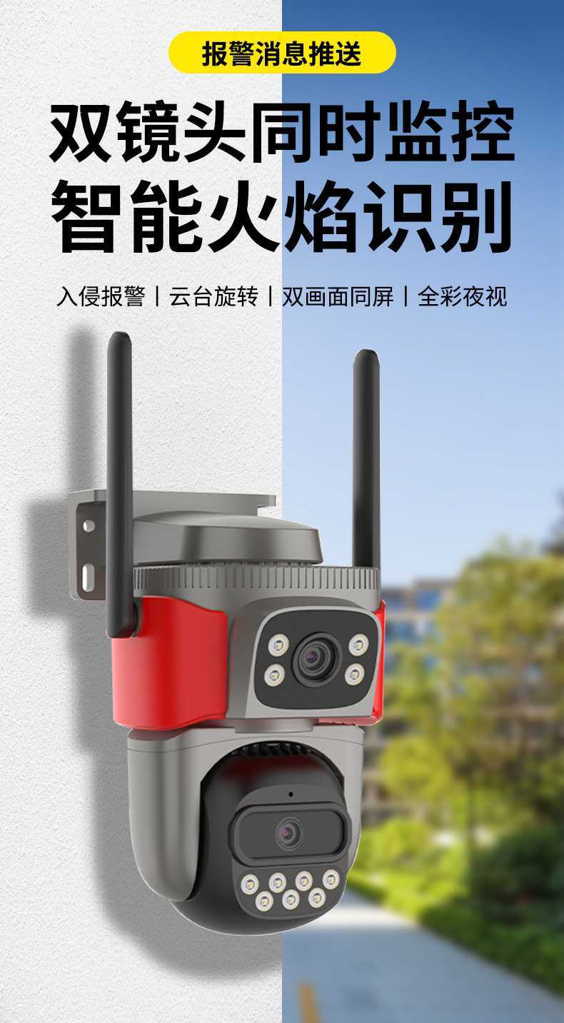 Monitoreo de alarma pirotécnica inteligente AI de doble lente de alta definición de visión nocturna de identificación remota cámara de monitoreo