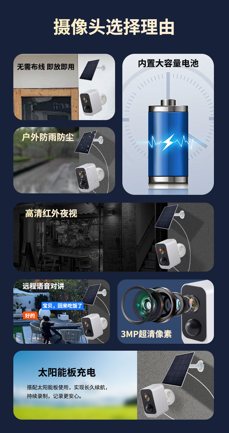 Explosión transfronteriza inalámbrica 3MP monitor solar al aire libre infrarrojo visión nocturna sin enchufe cámara de batería HD
