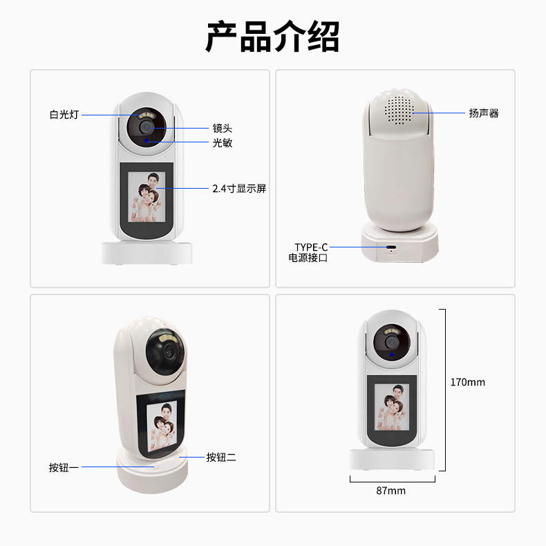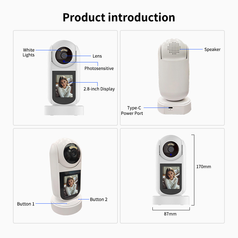 Watch King Cámara de video bidireccional con pantalla, hogar, ancianos, niños, teléfono móvil, WiFi remoto, PTZ, monitoreo