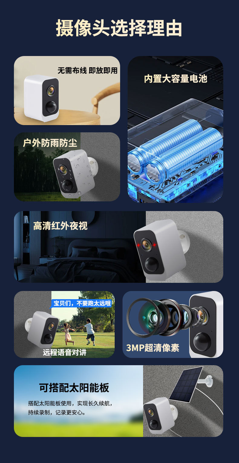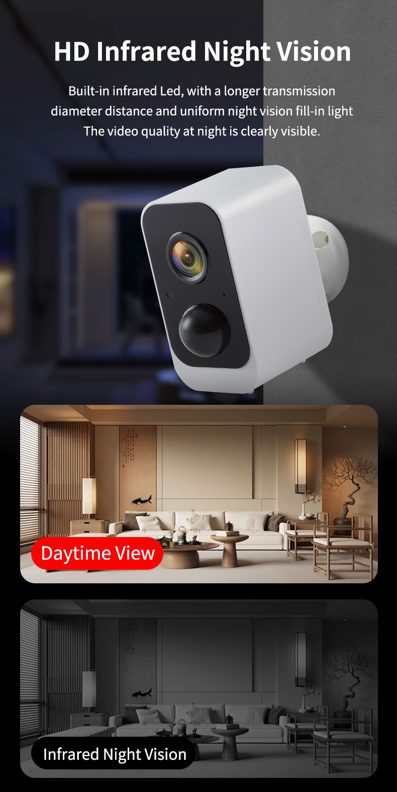 Cámara de vigilancia inalámbrica dedicada transfronteriza para uso doméstico, visión nocturna de alta definición, funciona con batería, no requiere cableado, intercomunicador de voz