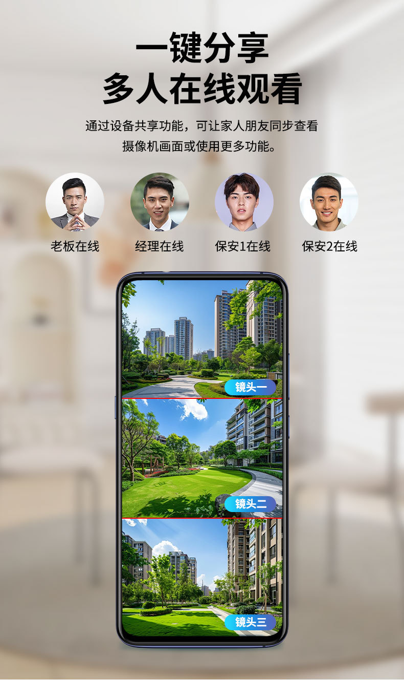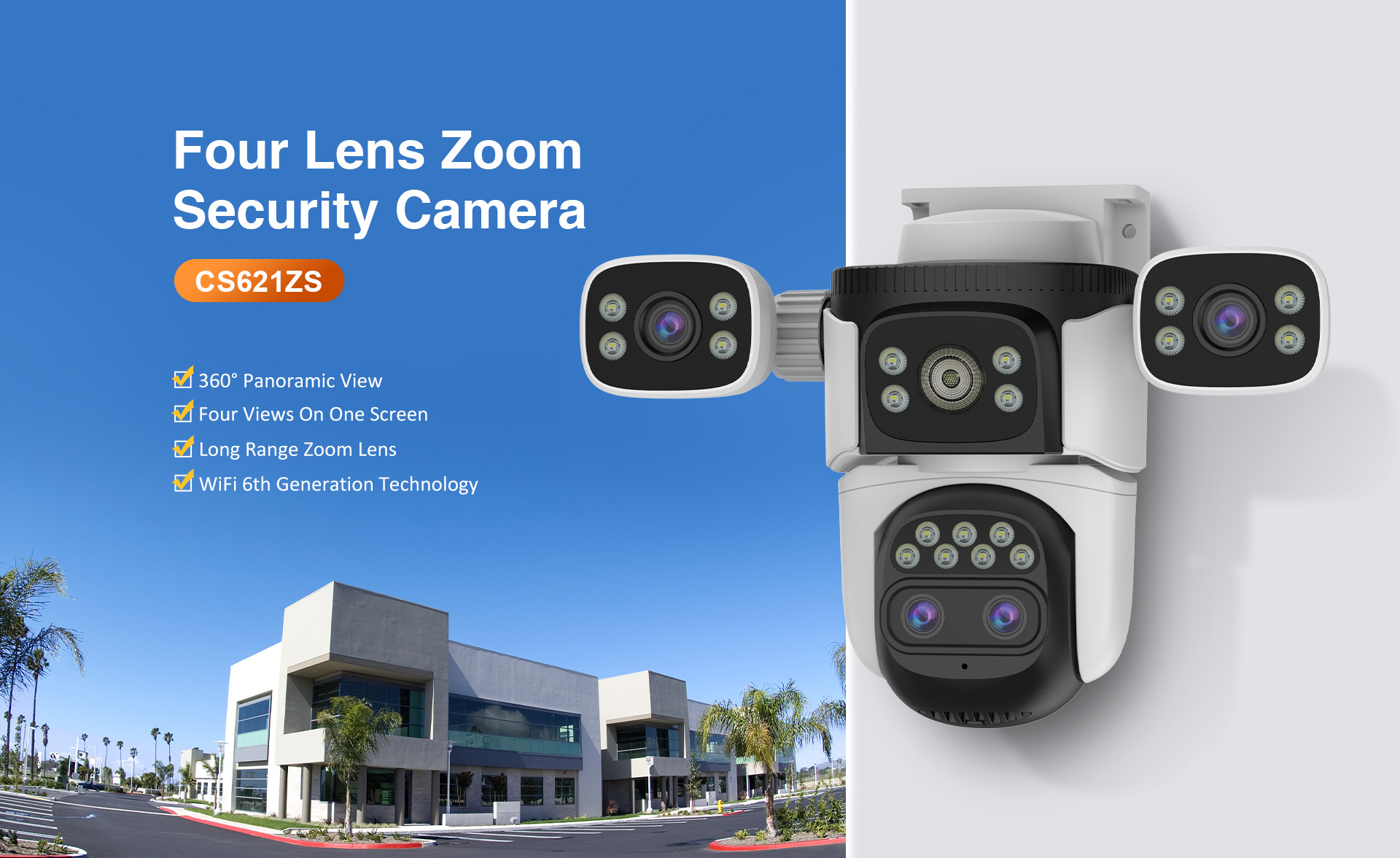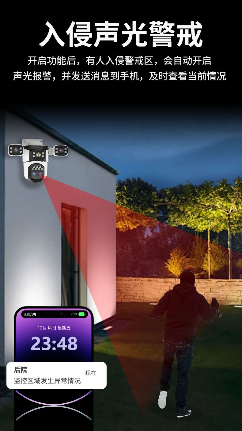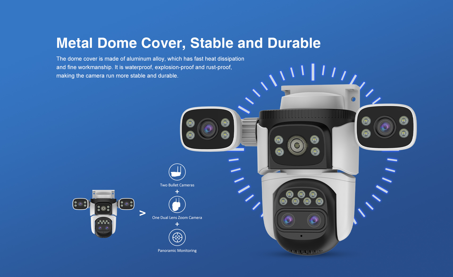 Cámara WiFi inalámbrica para exteriores de tres pantallas con enlace tipo bala giratoria de 360° ° Cámara de vigilancia remota para teléfono móvil sin puntos ciegos