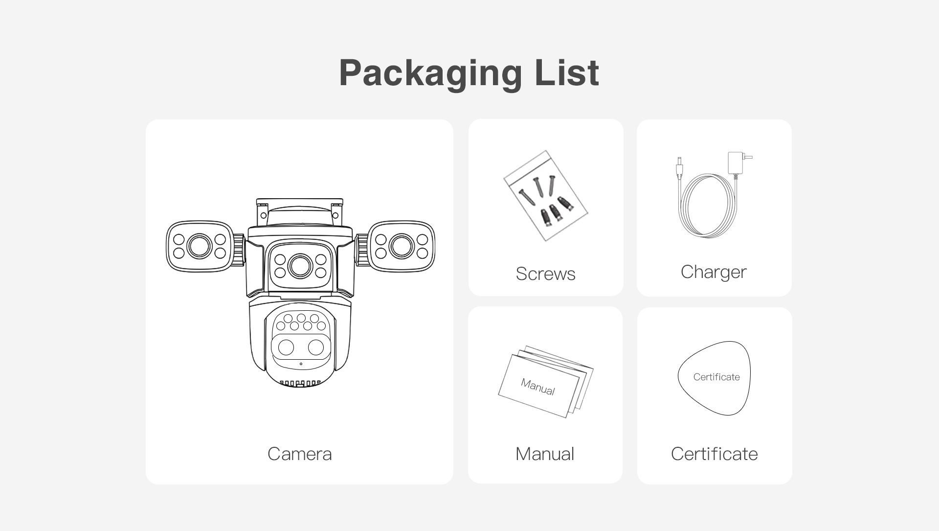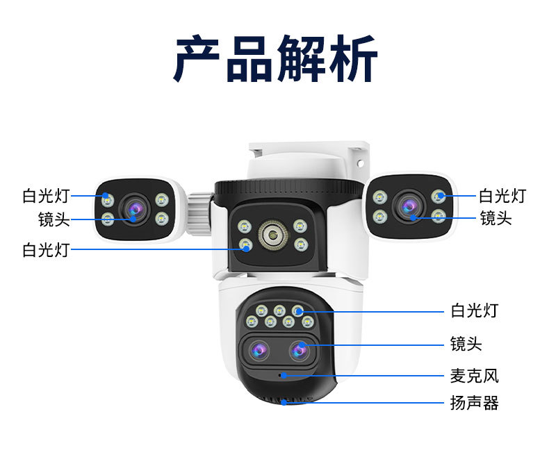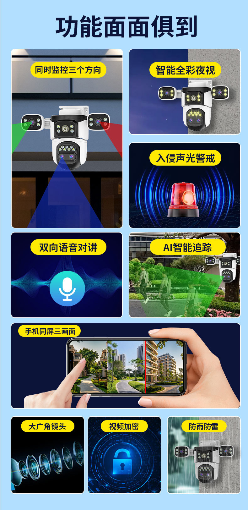 | Especificaciones | Fuente de alimentación de la versión de bola de pistola WIFI de tres ojos PTZ52 (sin tarjeta de memoria, comuníquese con el servicio al cliente para grandes cantidades),tarjeta de memoria 32G |