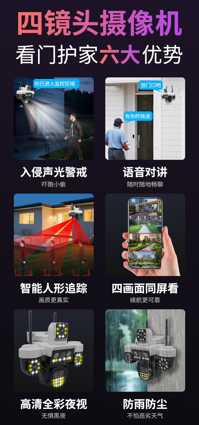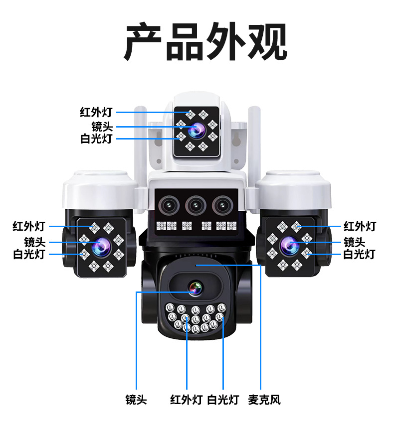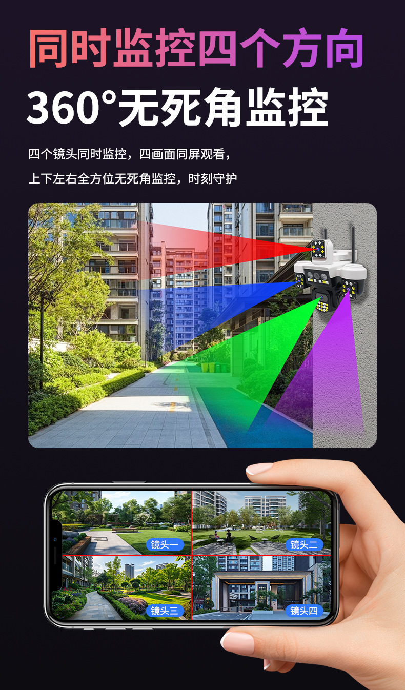 O-KAM cámara de enlace de bola de pistola de cuatro ojos al aire libre impermeable 360 panorámica PTZ monitor de alarma de seguimiento inteligente