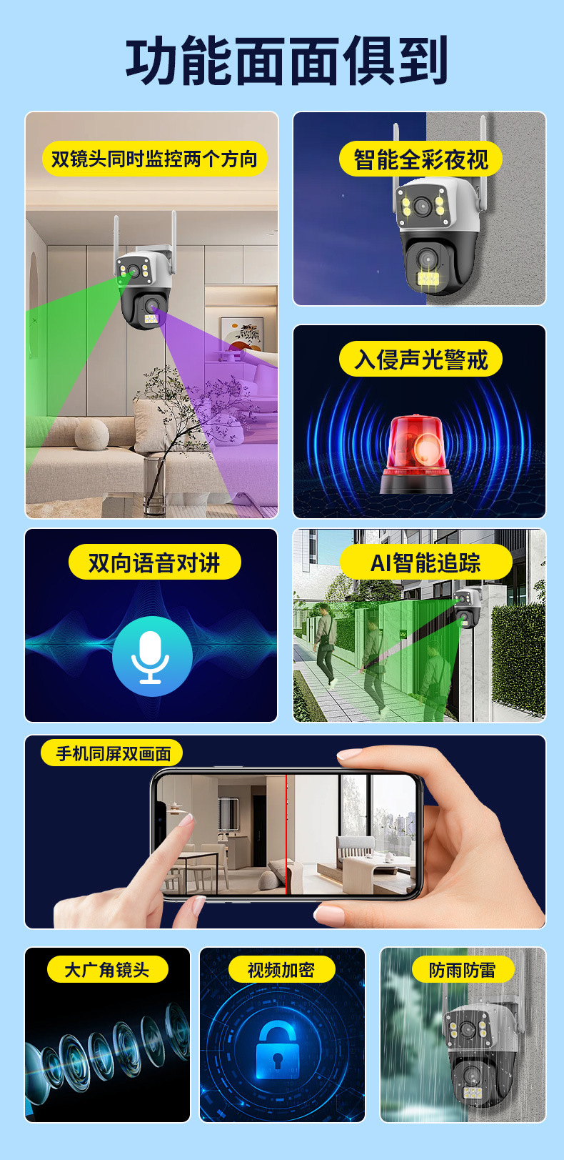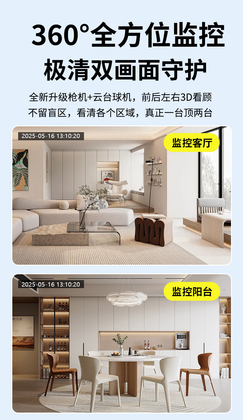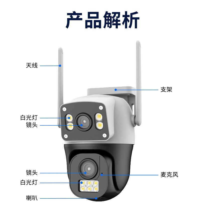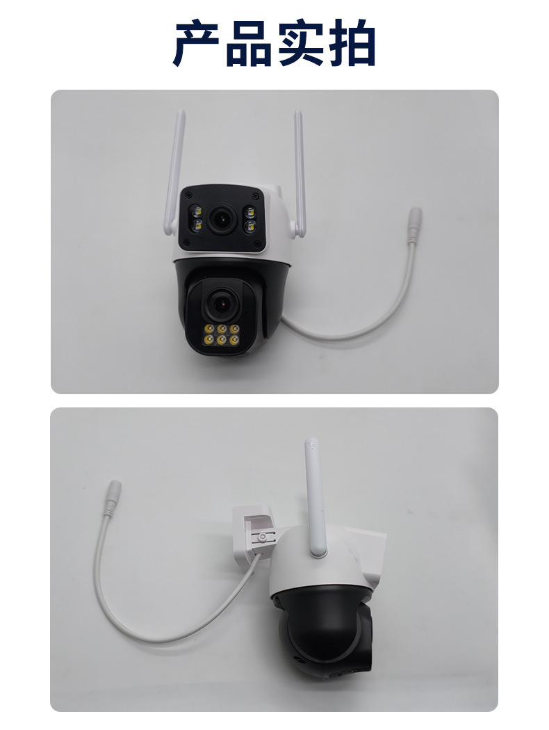 | Especificaciones | Cámara PTZ Wi-Fi de doble lente (Tarjeta de memoria no incluida. Para pedidos al por mayor, comuníquese directamente con el servicio de atención al cliente).,Fuente de alimentación 5V 2A |