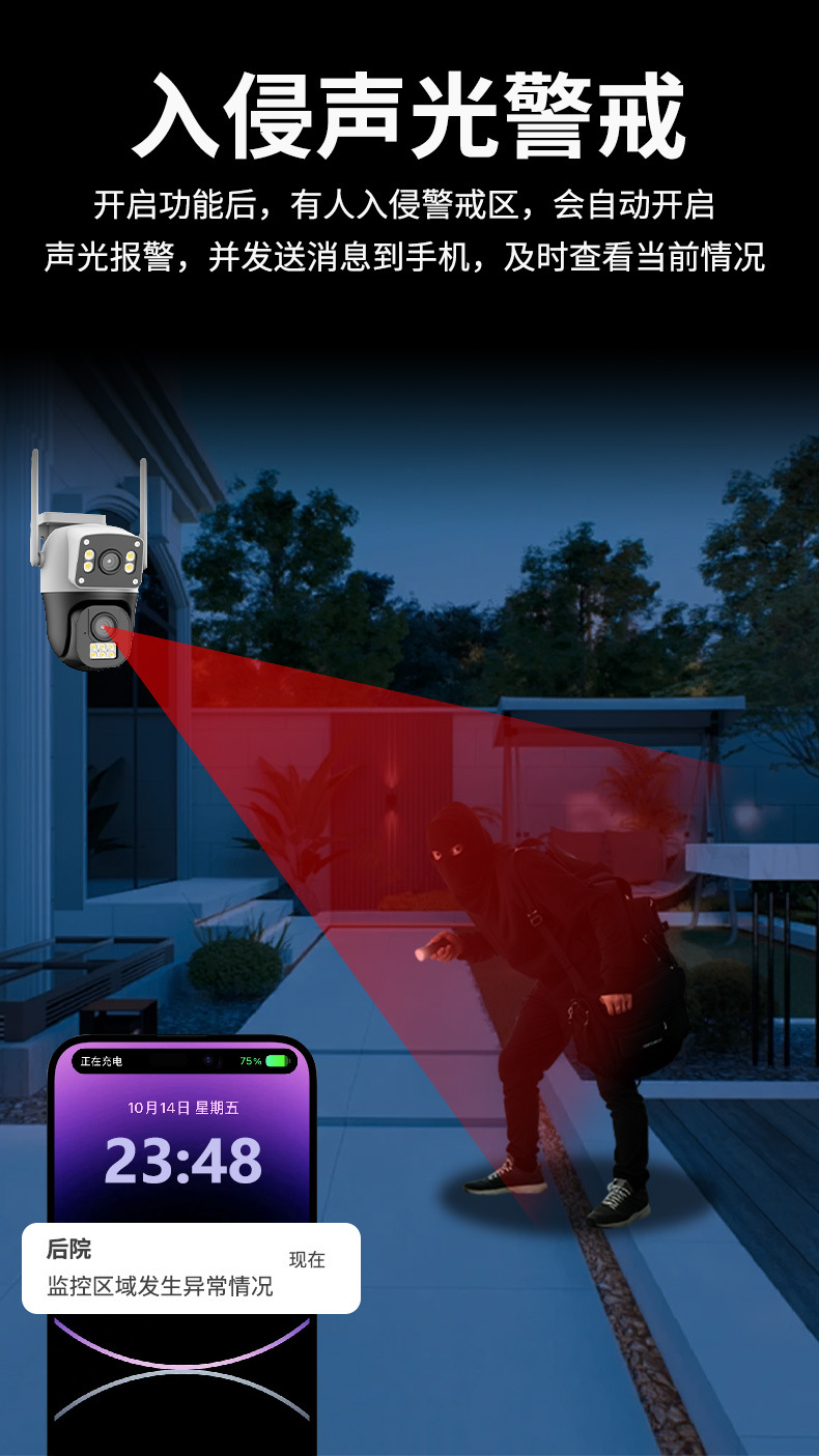 V380PRO Monitor inalámbrico binocular 360 Panorama al aire libre de doble pantalla Gun Ball Link Cámara de vigilancia para el hogar