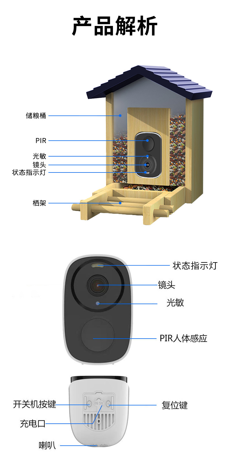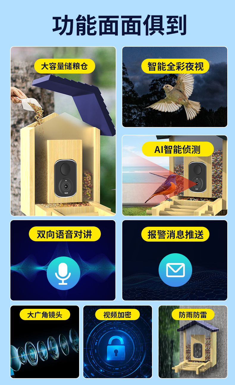 Amazon explosiva cámara de observación de aves inteligente al aire libre WiFi inalámbrico HD comedero para pájaros solar de baja potencia