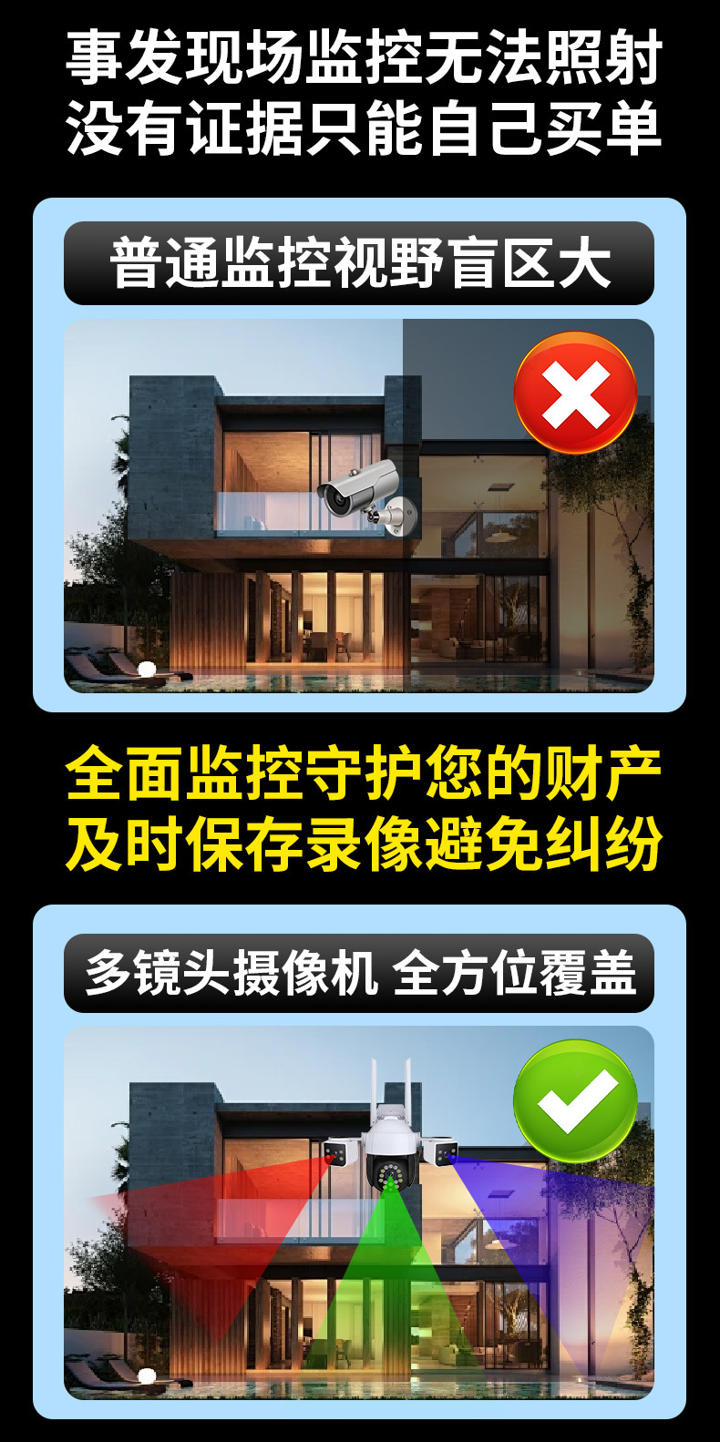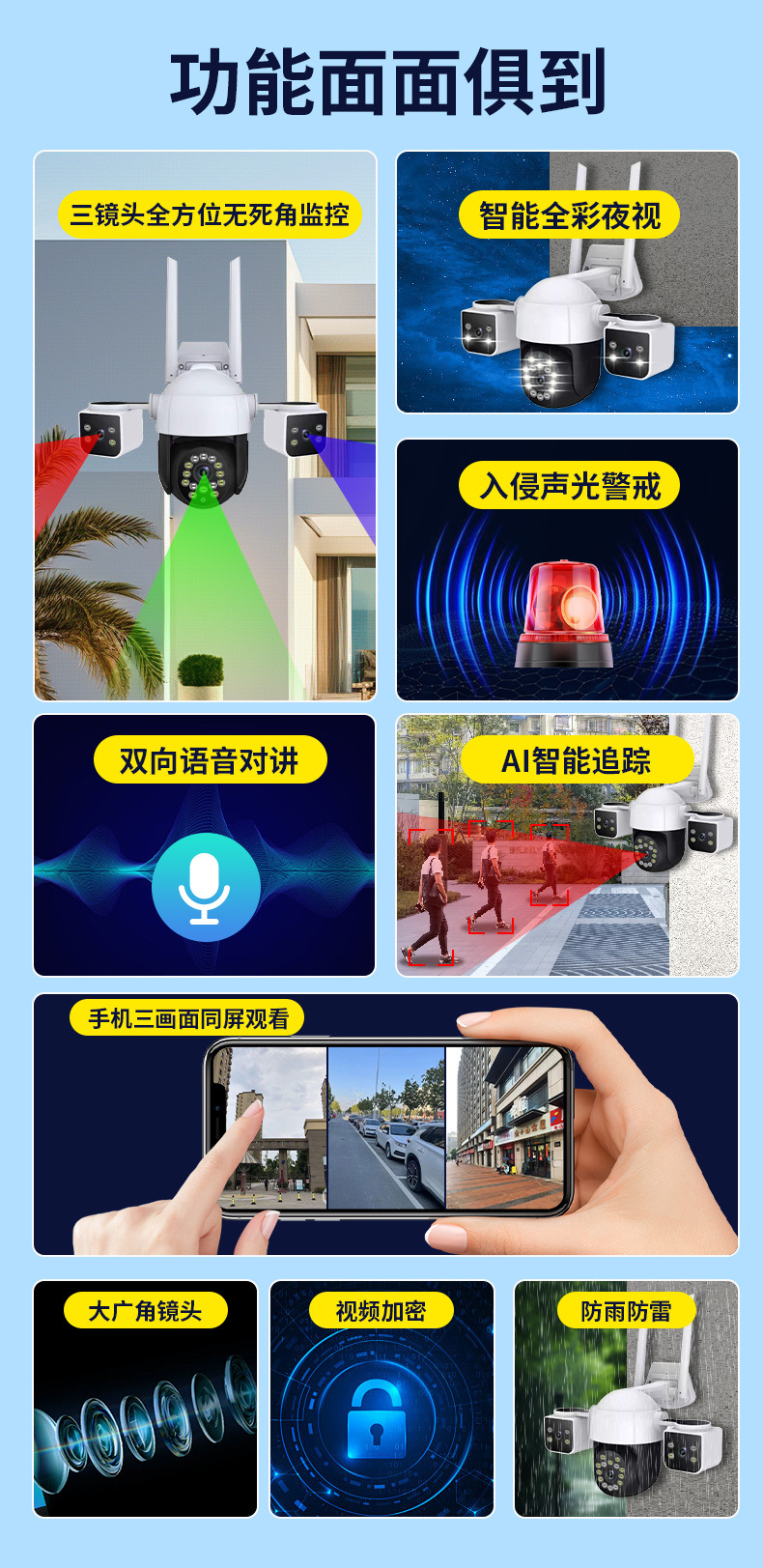 V380pro real 3 malla 6MP hogar WIFI HD a todo color visión nocturna exterior impermeable 360 cámara de vigilancia panorámica