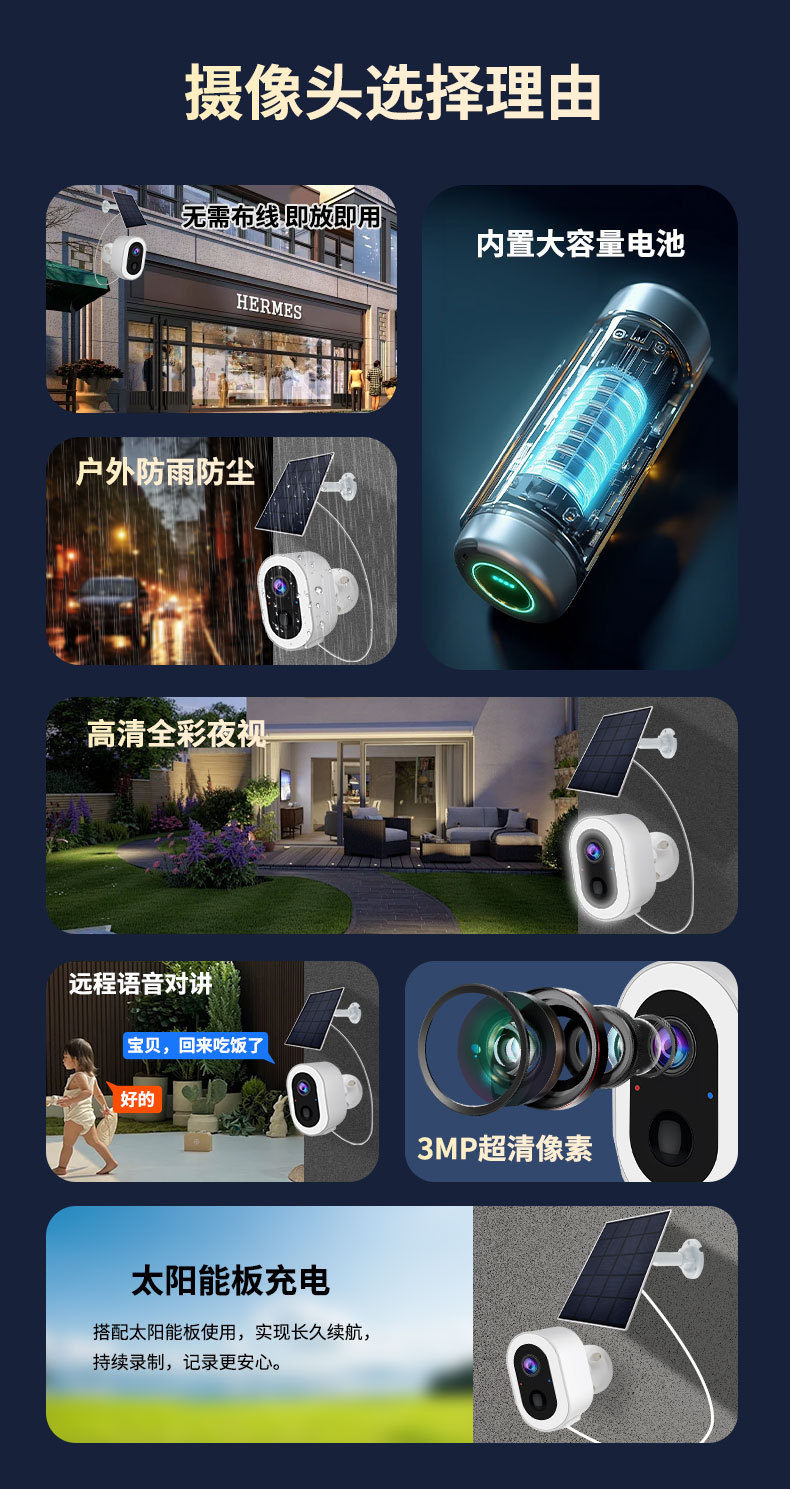 3MP batería WiFi cámara solar al aire libre impermeable sin enchufe doble luz a todo color monitoreo de seguridad inteligente