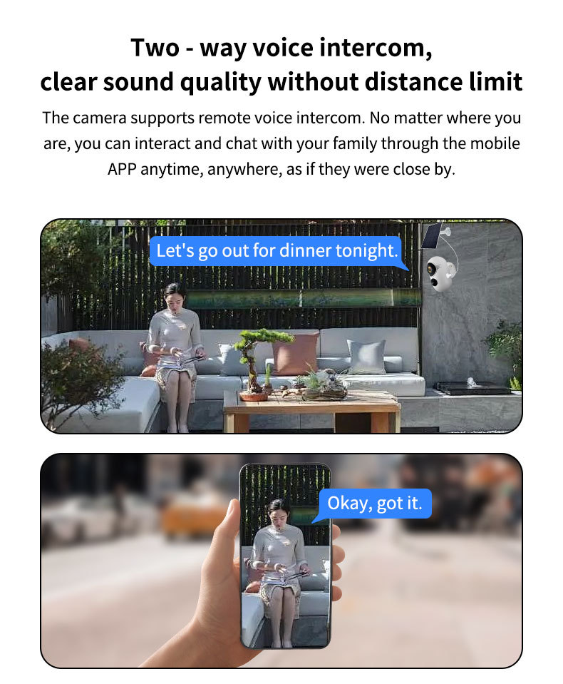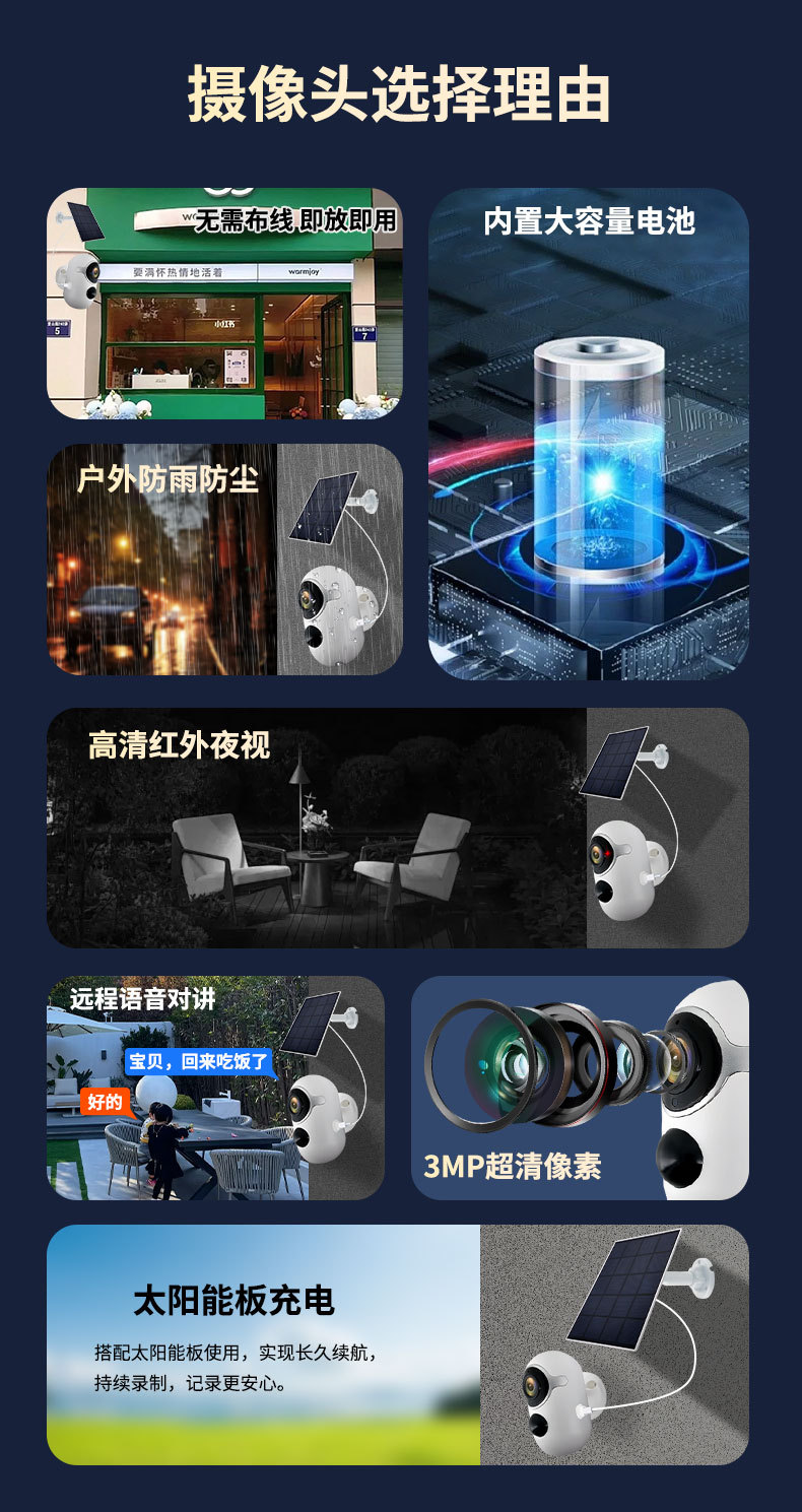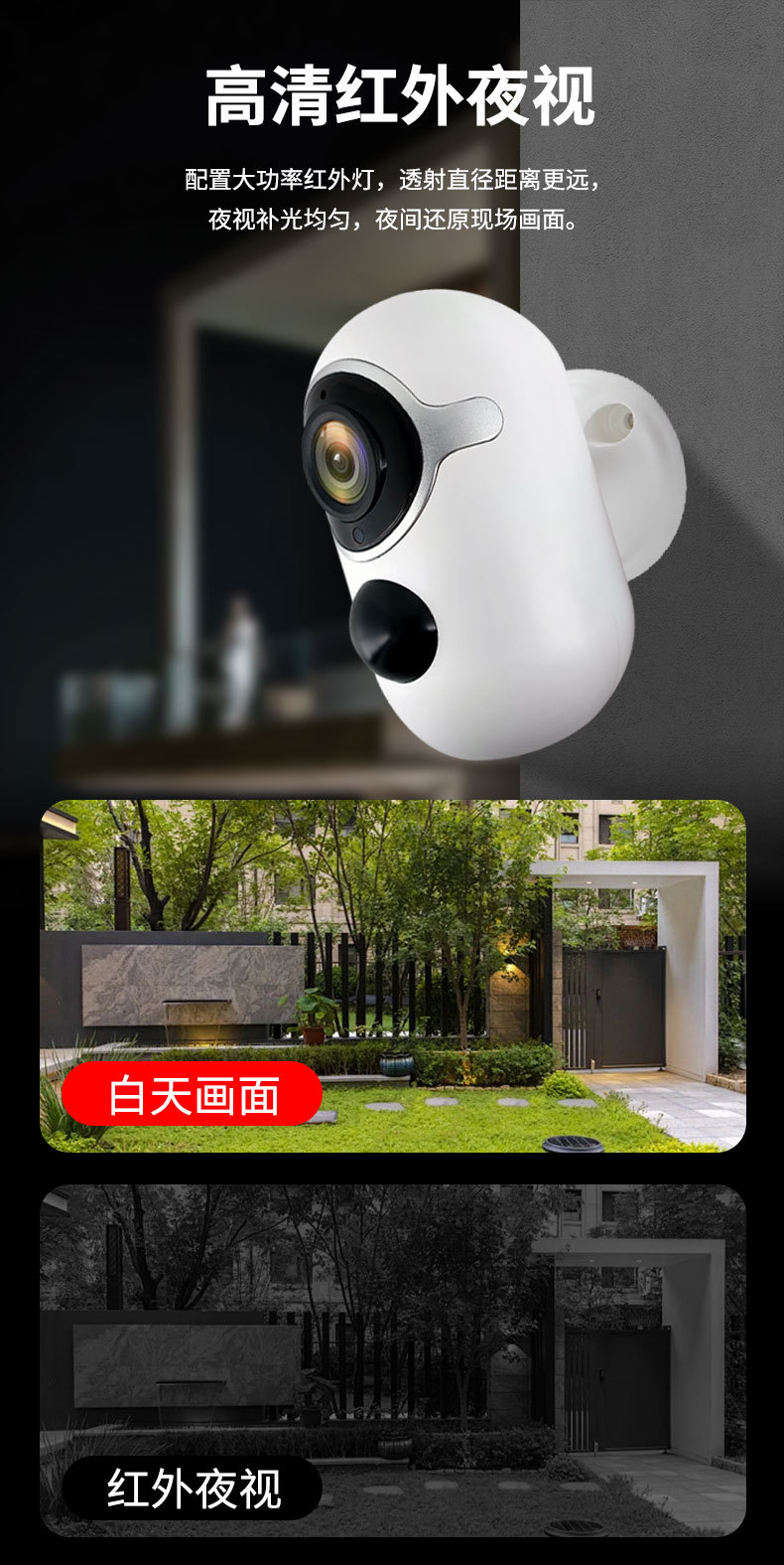3MP batería solar interior y exterior sin conexión monitoreo WiFi cámara de visión nocturna infrarroja monitoreo solar
