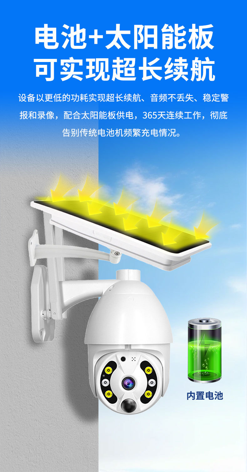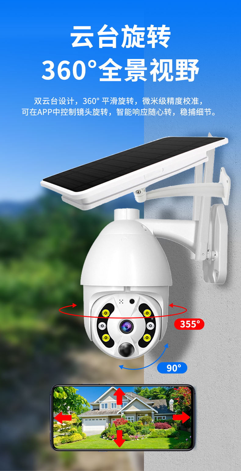 Cámara de vigilancia de alta definición para el hogar, red inalámbrica panorámica de 360°, monitoreo solar de bajo consumo de 3MP, venta al por mayor transfronteriza