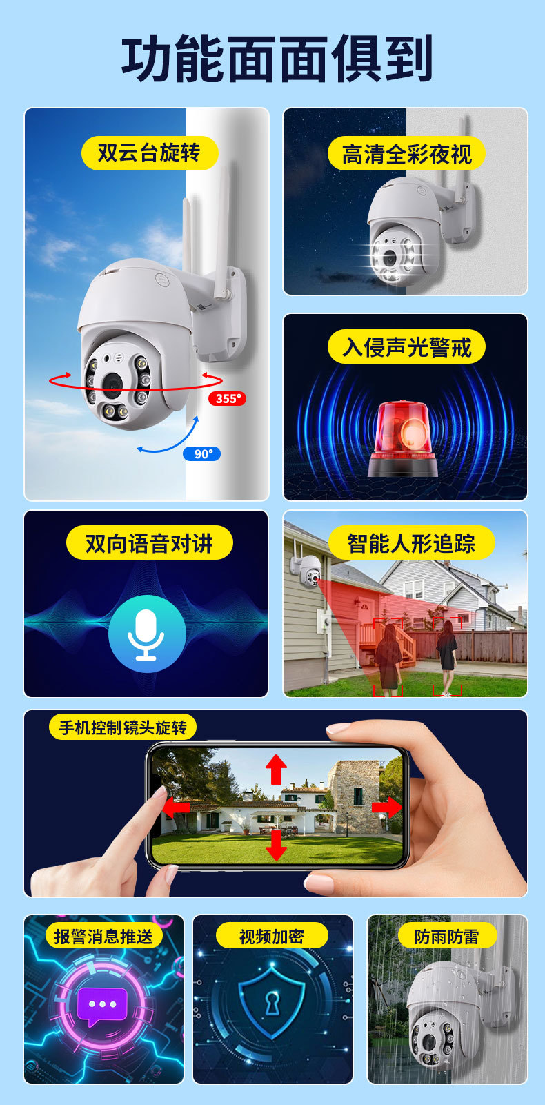 Cámara inalámbrica para exteriores, WIFI, 1080P, teléfono móvil, remoto, 360, seguridad panorámica, cámara inteligente HD