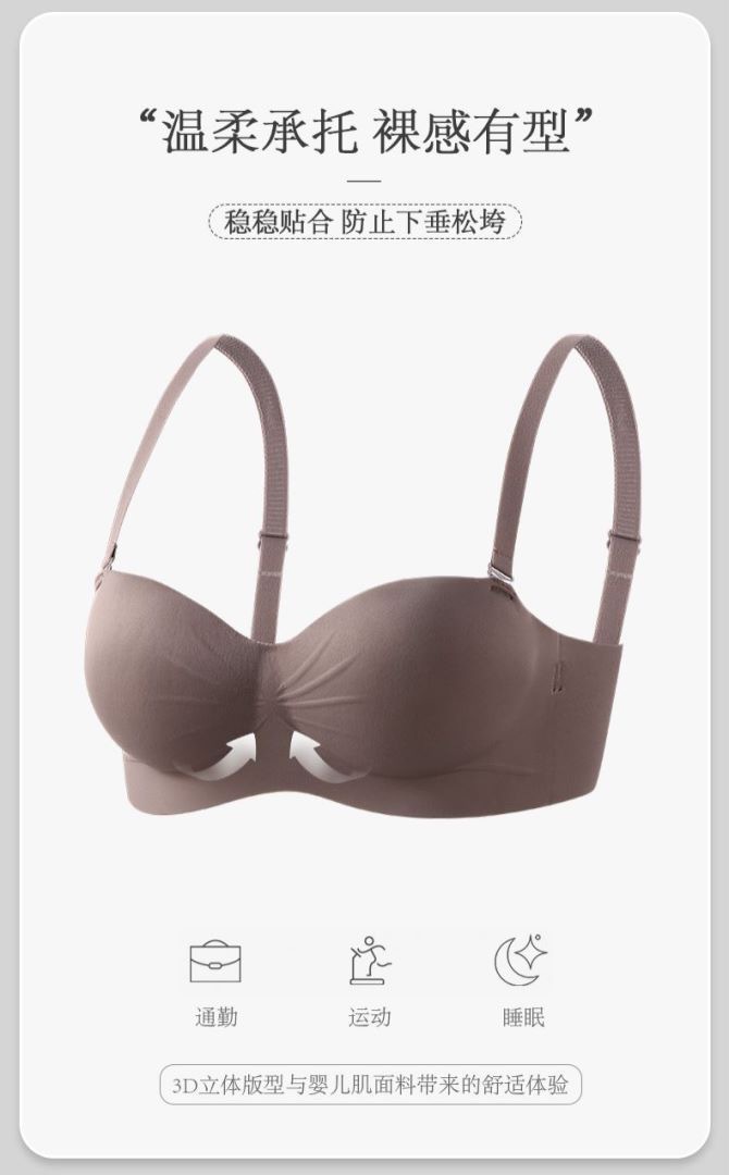 Sin marcas de limpieza de pecho cerrado soporte superior cómodo pecho pequeño mostrando ropa interior grande mujer belleza espalda correa de hombro desmontable sin anillo de acero bra