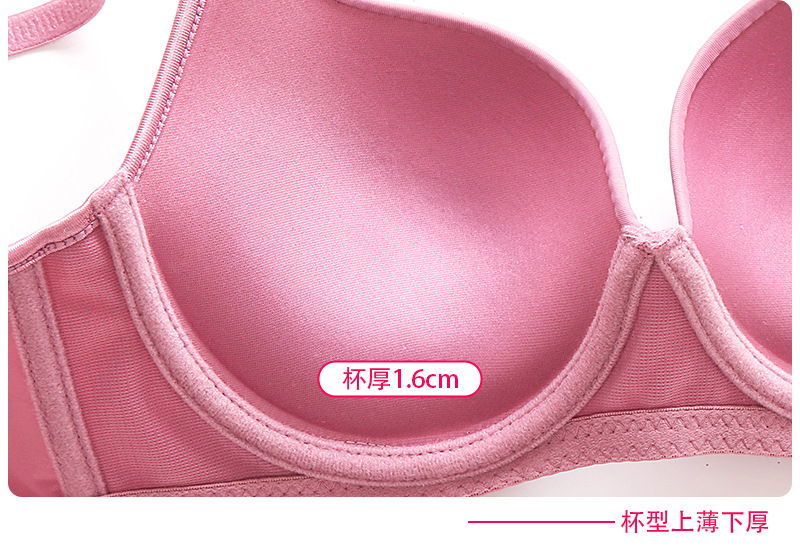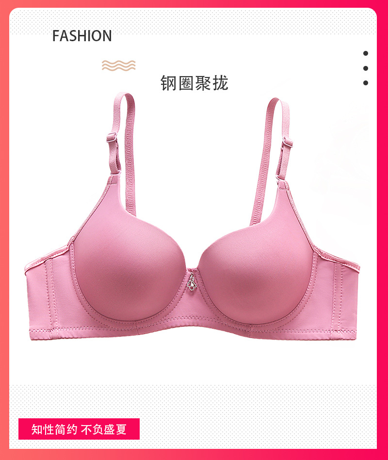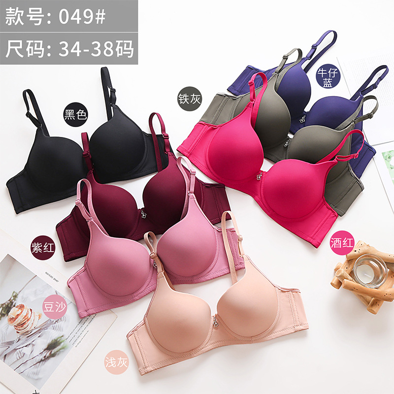 Brillante todo partido ropa interior de pecho pequeño color sólido de las mujeres sin costuras superior delgada inferior gruesa sexy push up soporte superior anillo de acero suave sujetador 049
