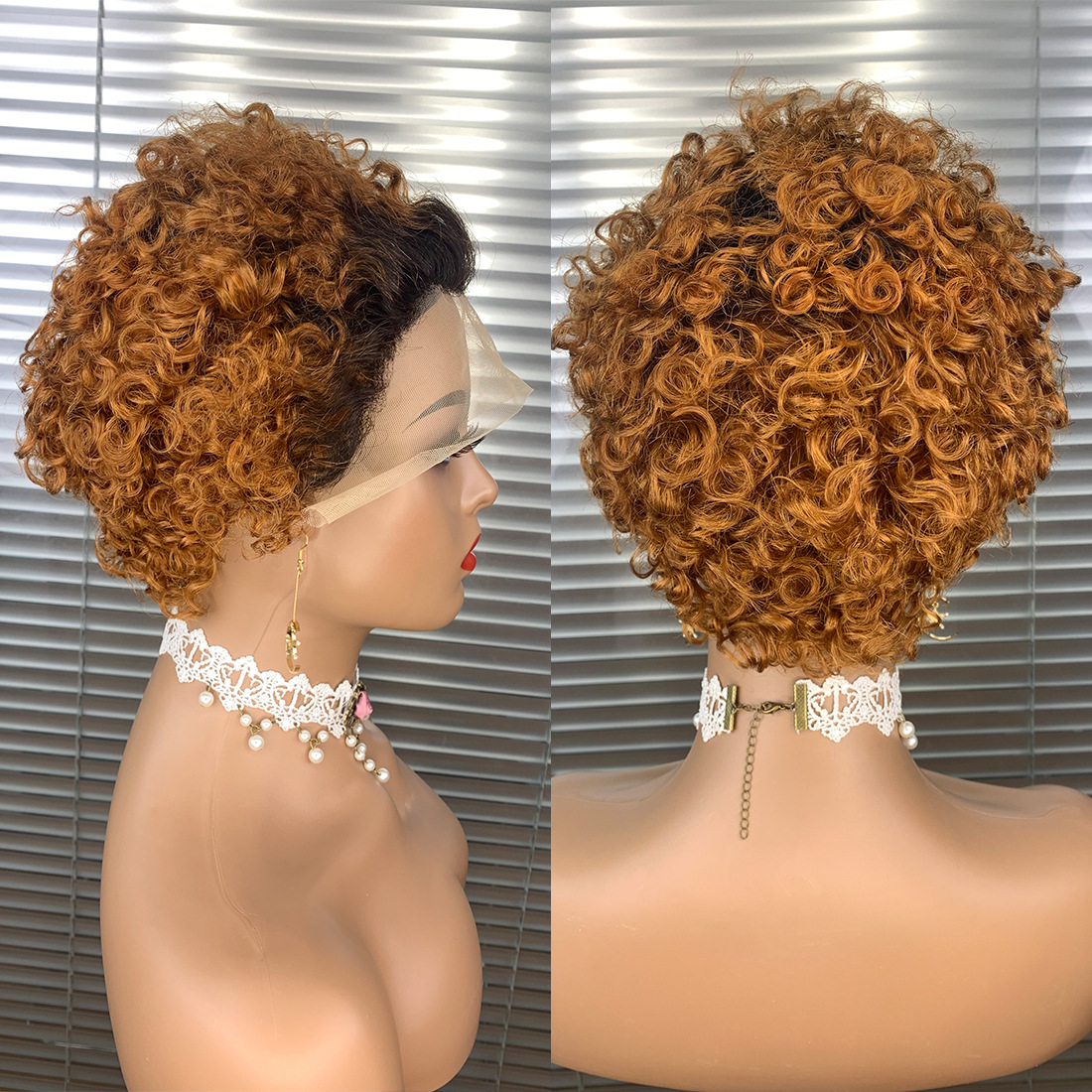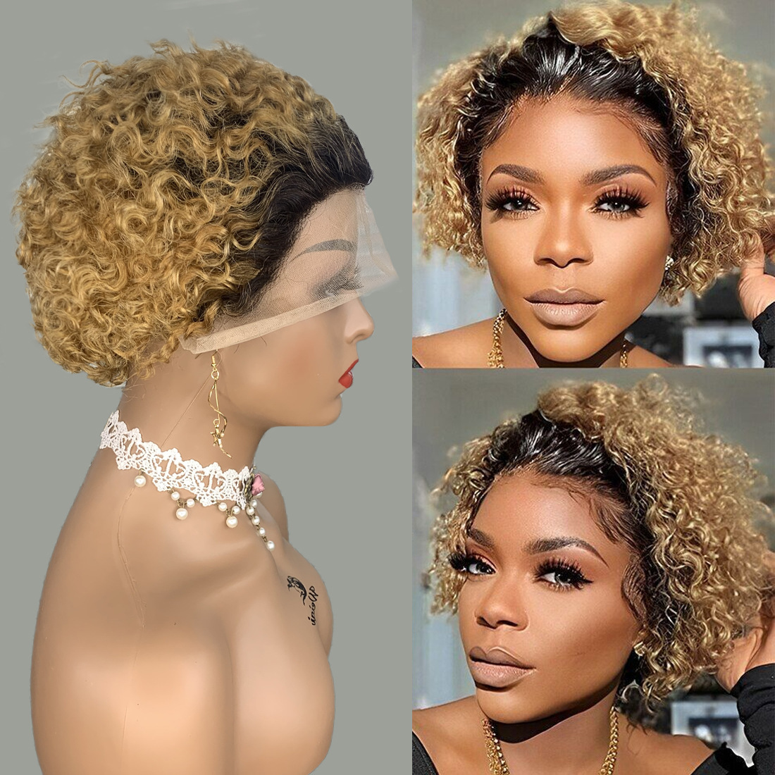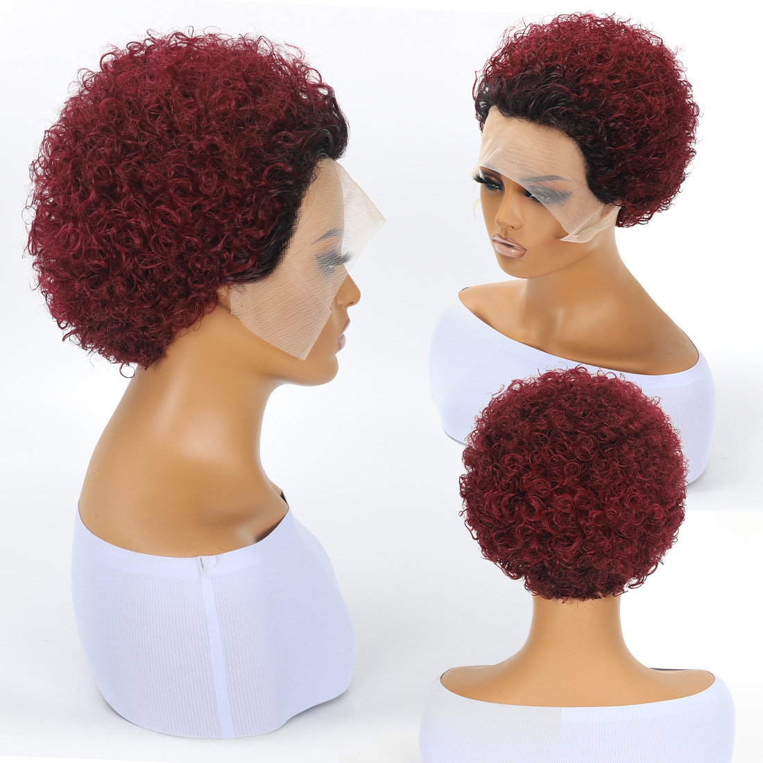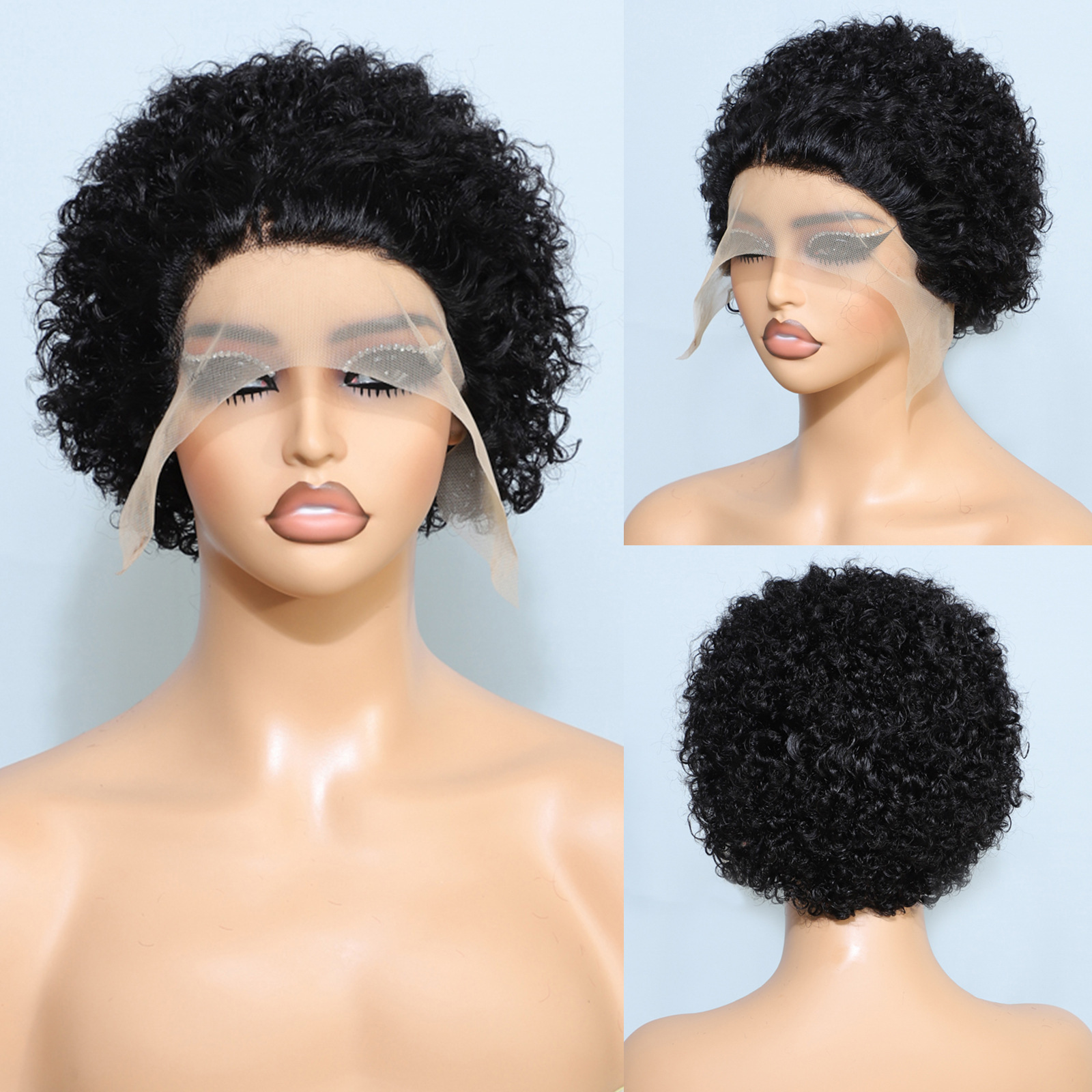Peluca de cabello humano real con encaje completo 13*1, estilo africano con rizos pequeños, popular en Amazon.