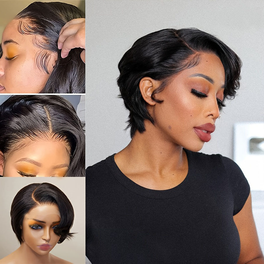 13x4x1 encaje frontal peluca pixie corte cabello humano frente encaje cabello humano