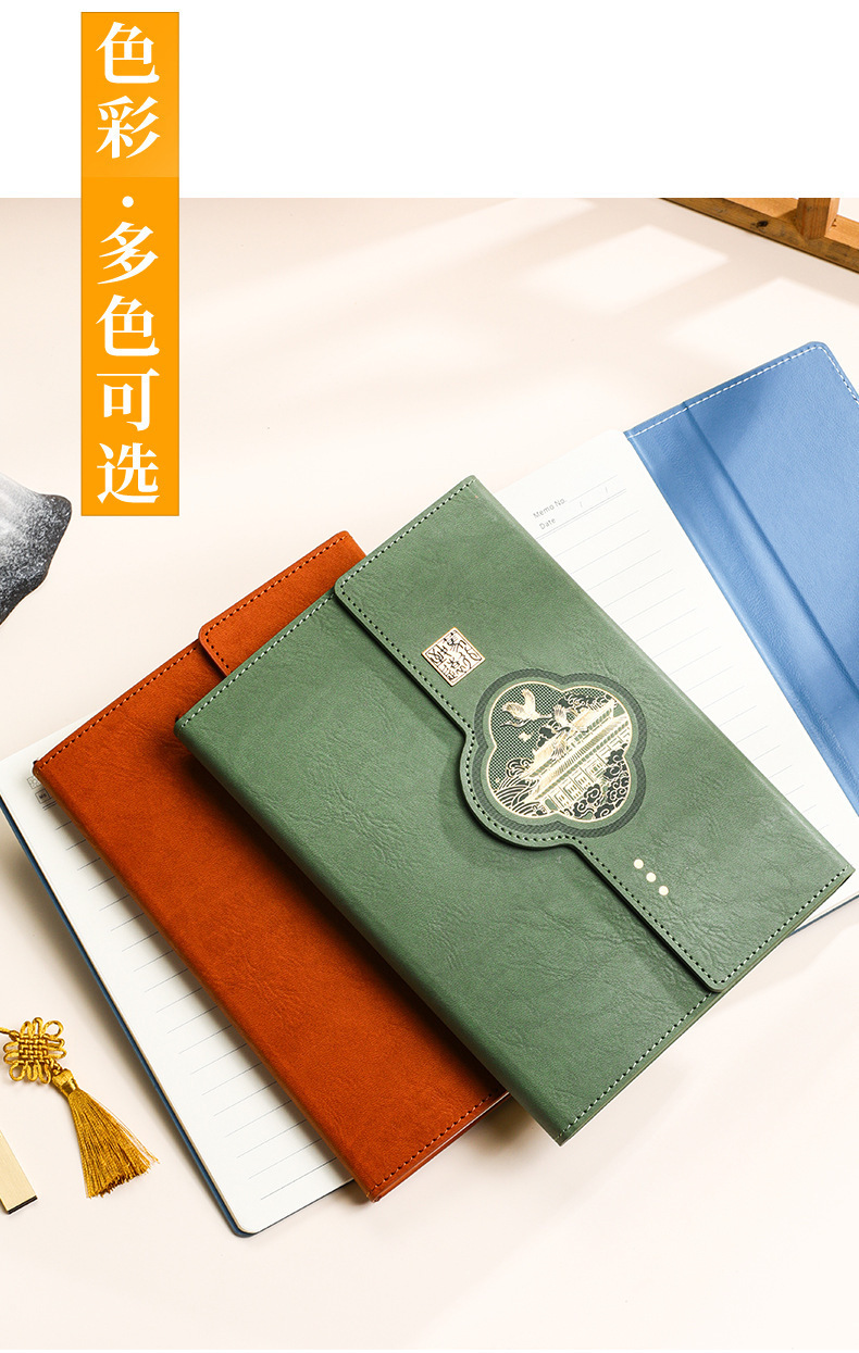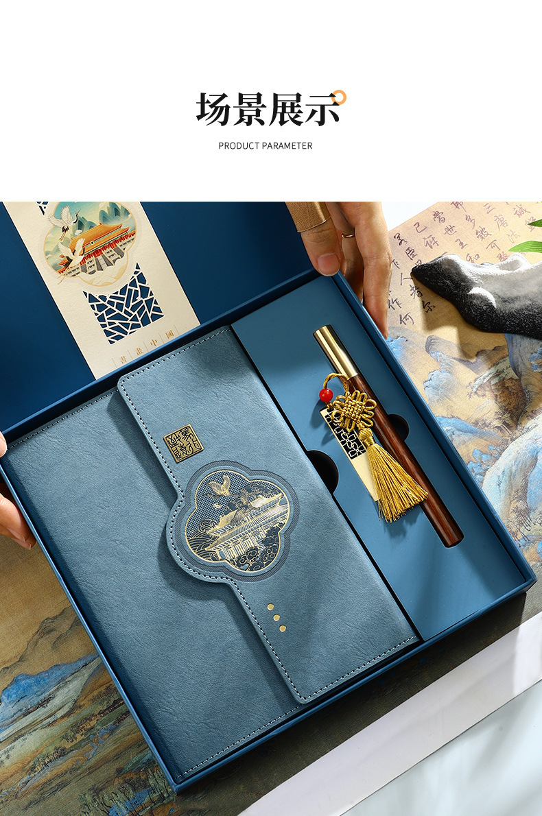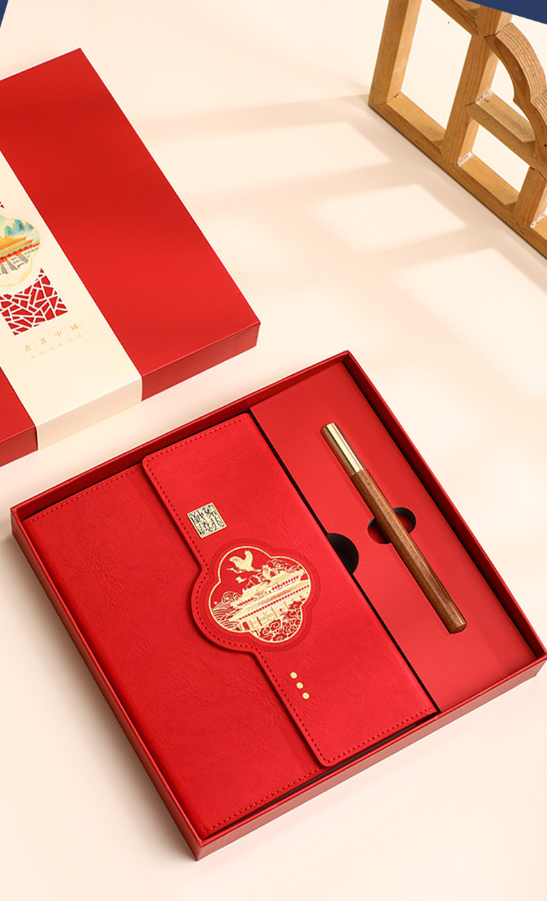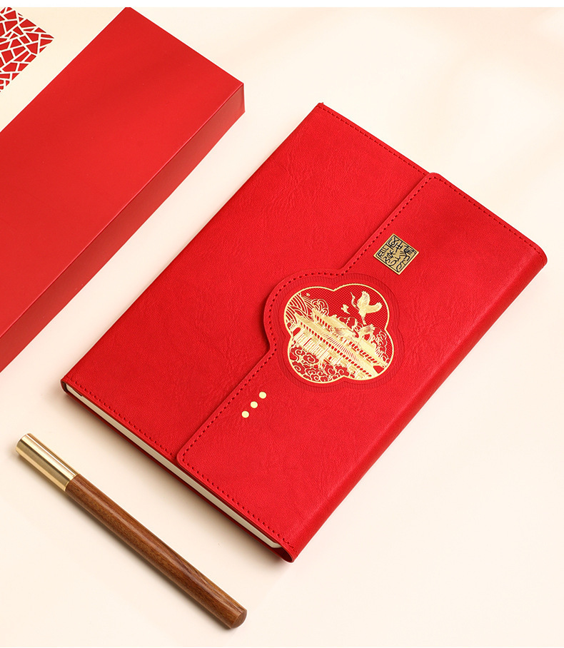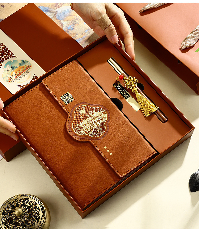 Nuevo 2026 Guochao Wenchuang caja de regalo de cuaderno de notas de reunión de oficina de negocios con logotipo imprimible