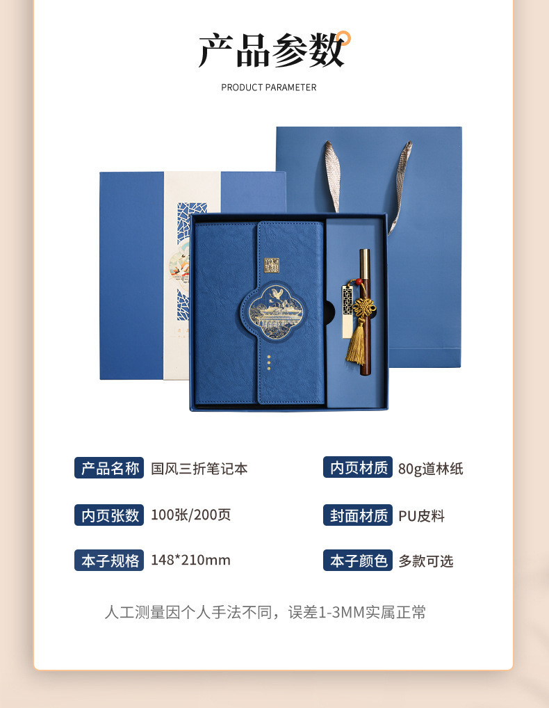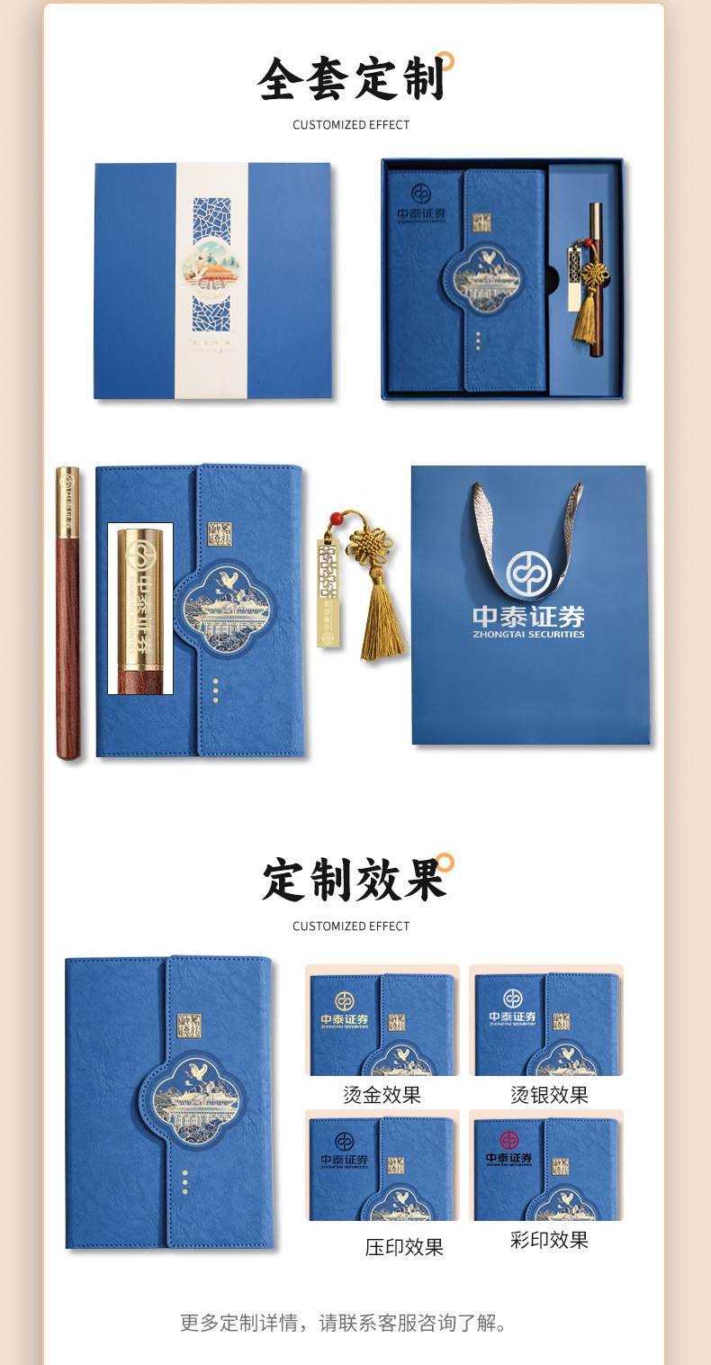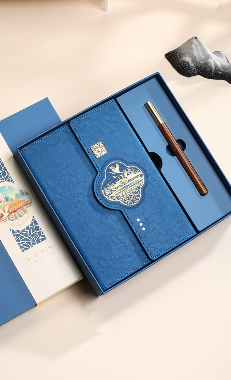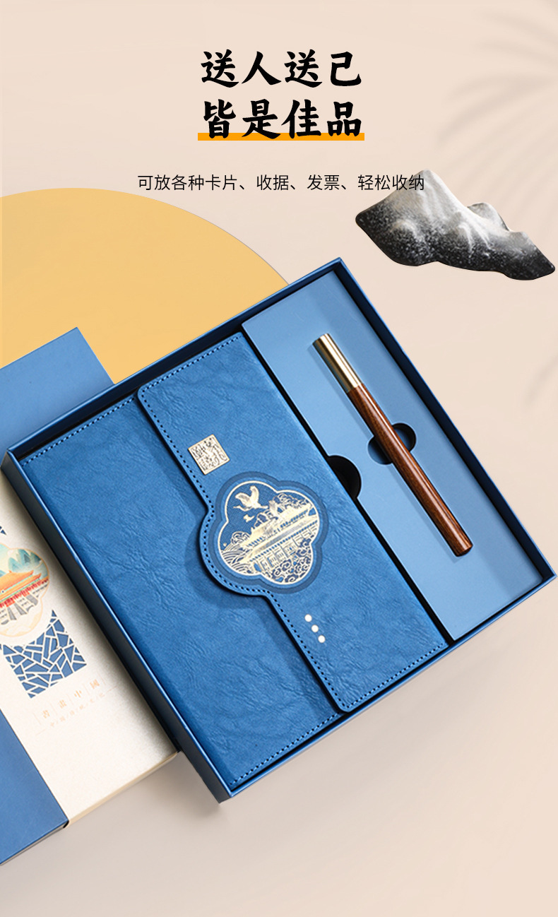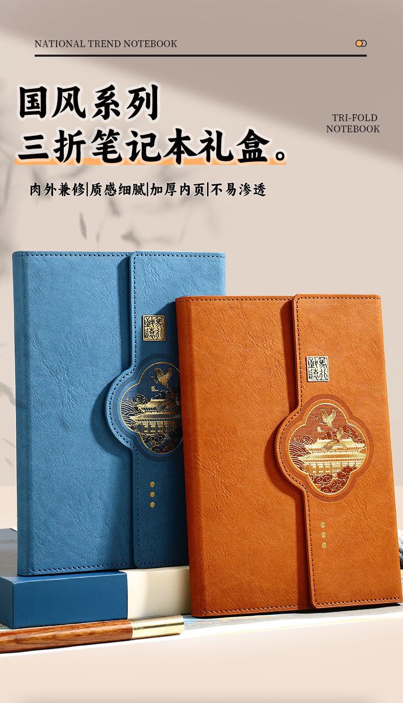 Nuevo 2026 Guochao Wenchuang caja de regalo de cuaderno de notas de reunión de oficina de negocios con logotipo imprimible