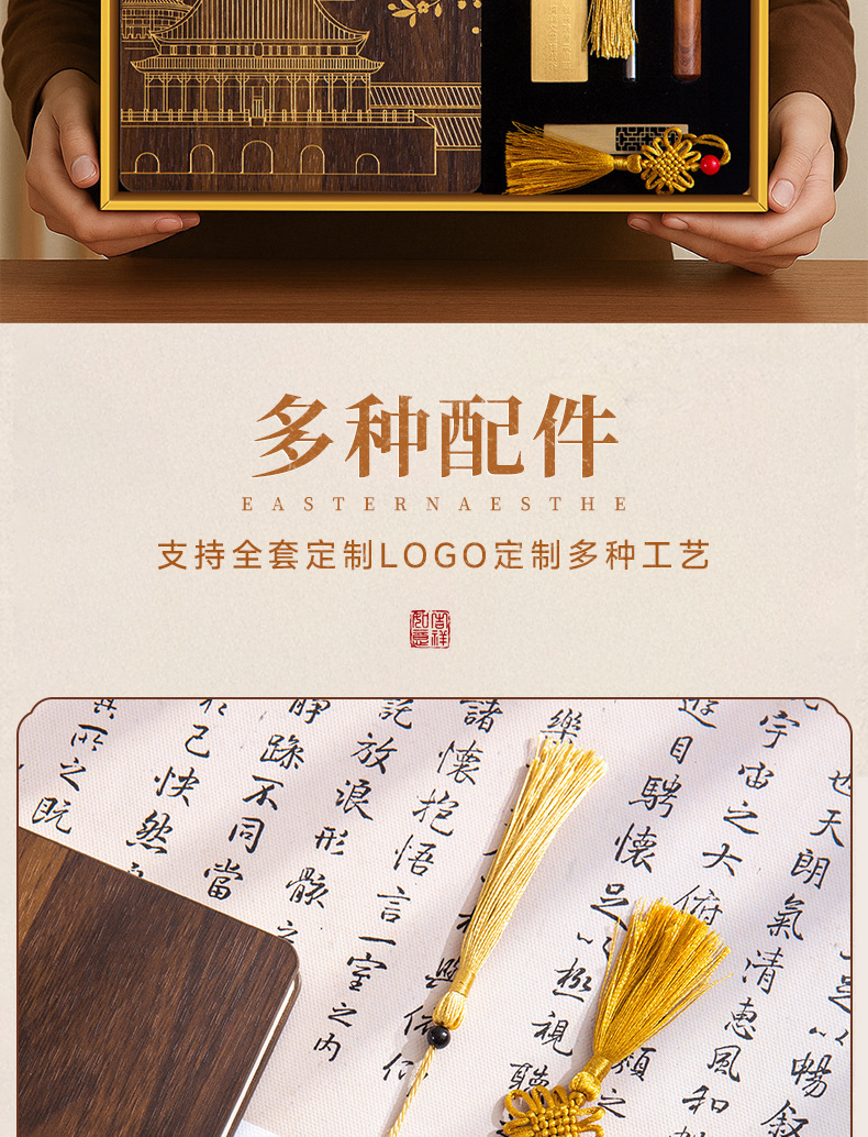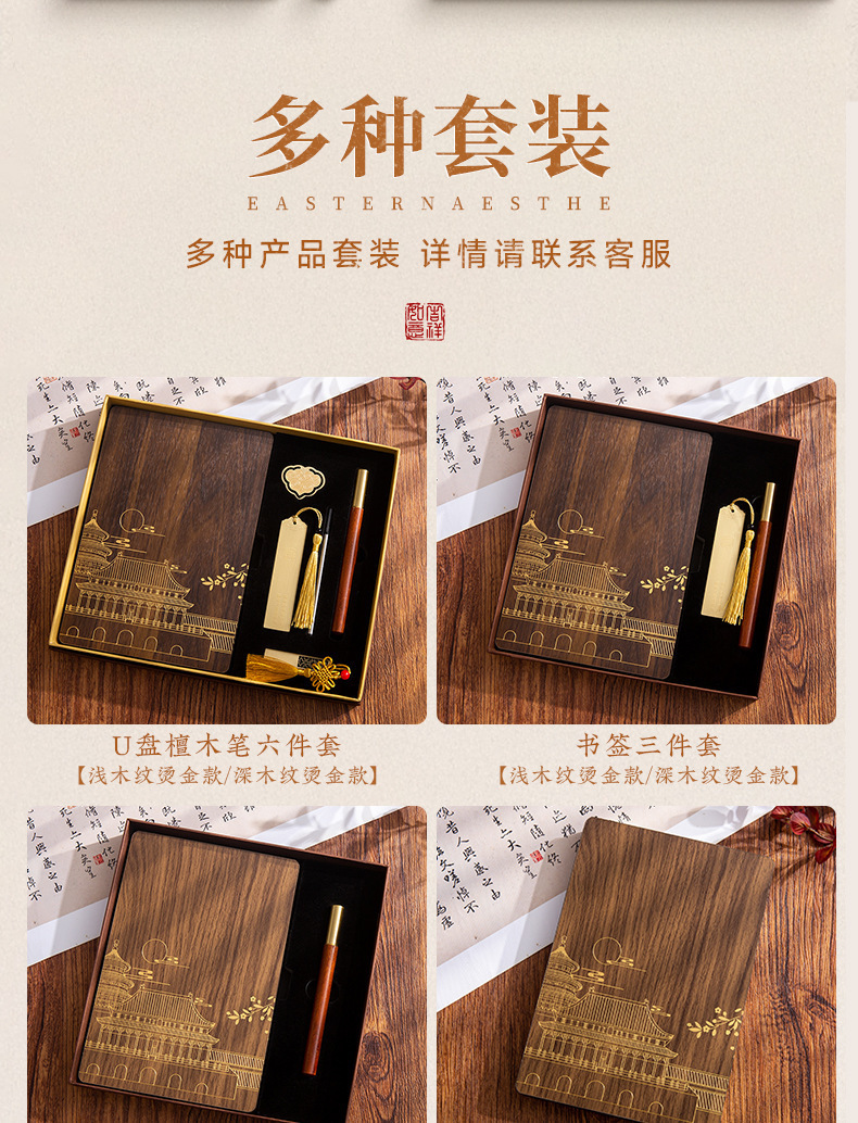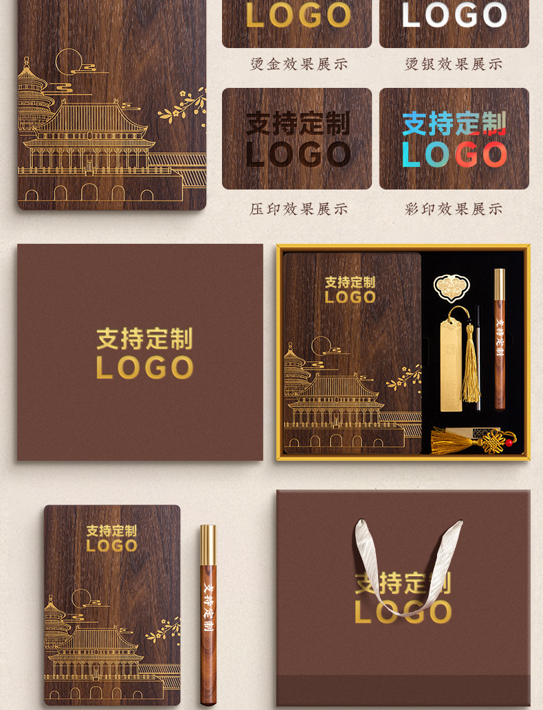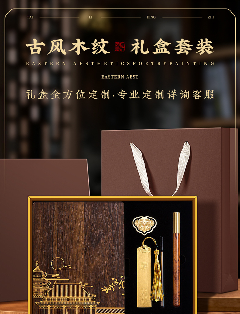 A5 estilo nacional cuaderno de madera maciza DZ caja de regalo conjunto puede imprimir logotipo de alto valor facial cuaderno de oficina de negocios