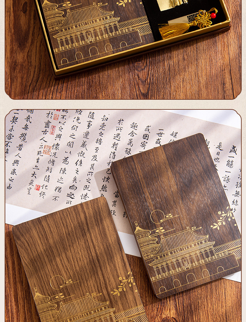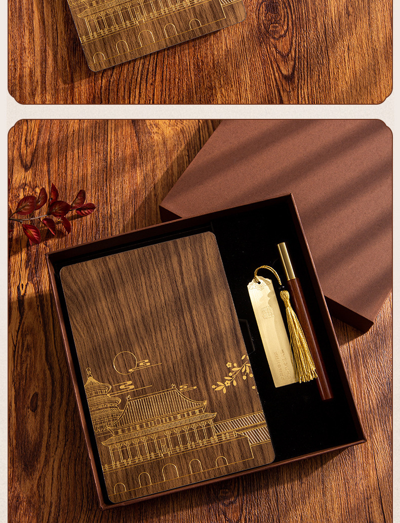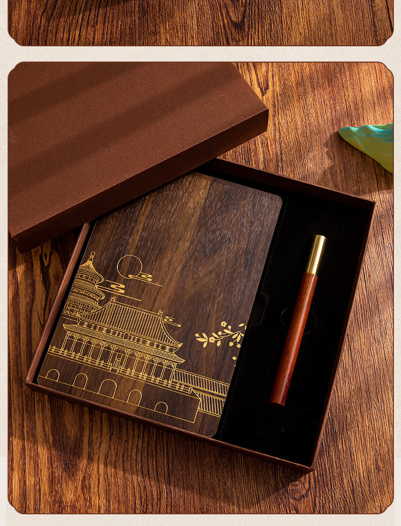 | Uso | Cuaderno de madera creativo transfronterizo ligero lujo alto sentido conjunto de caja de regalo cuaderno de negocios a5 caja personalizada de regalo de alto valor de la cara reunión anual regalo cuaderno de notas estilo nacional retro |