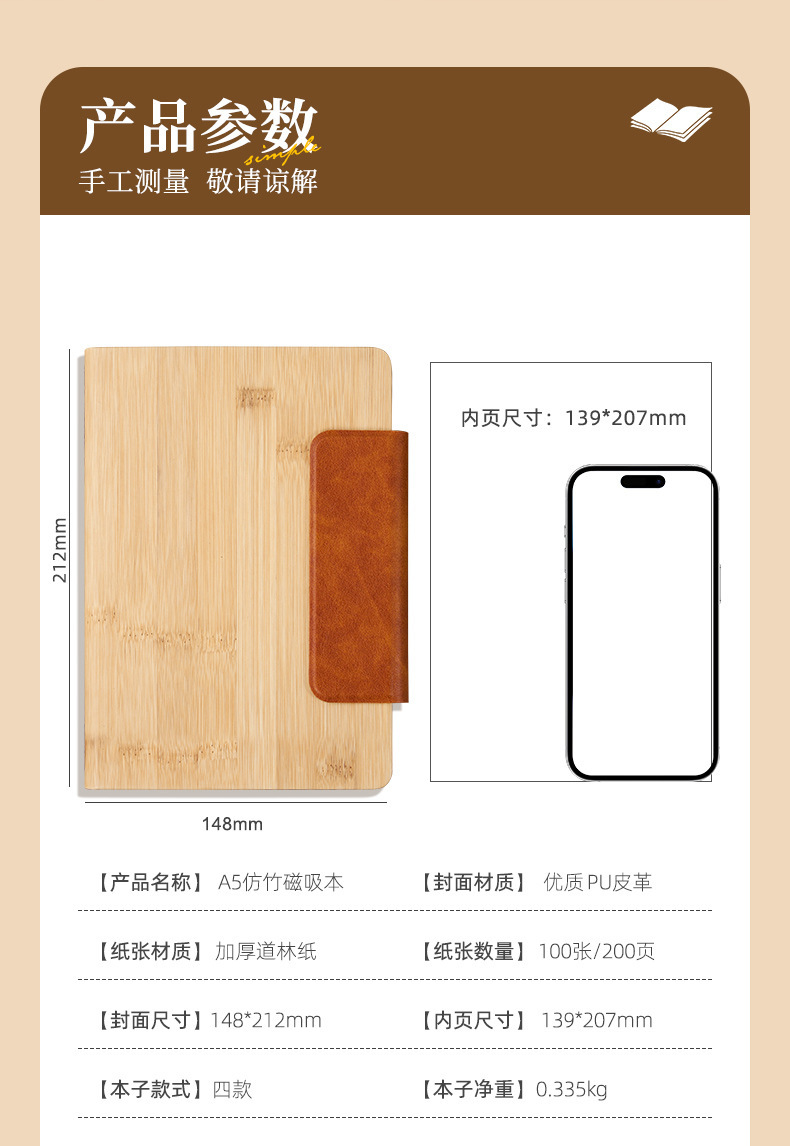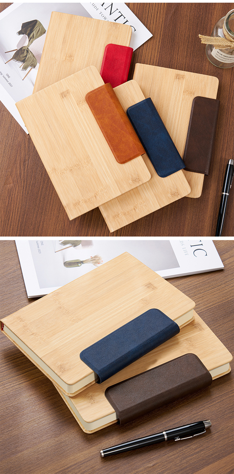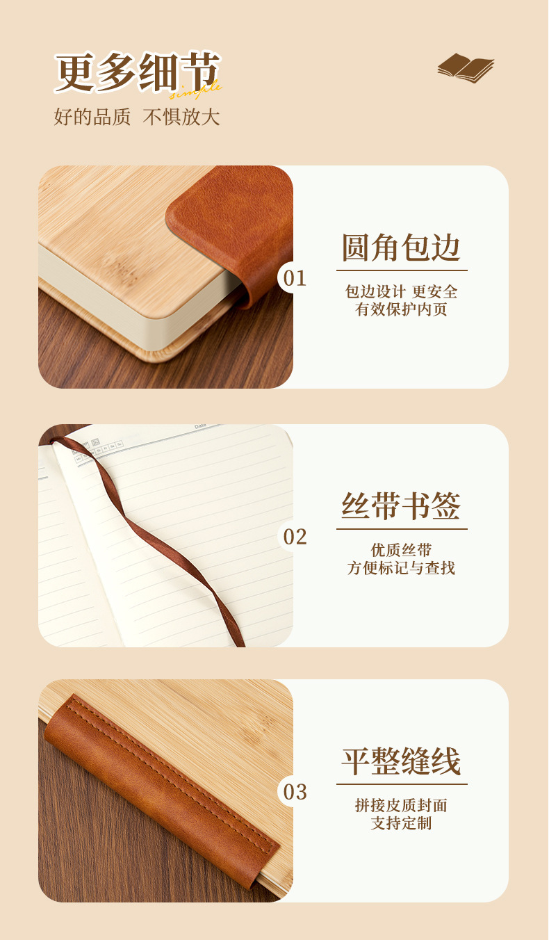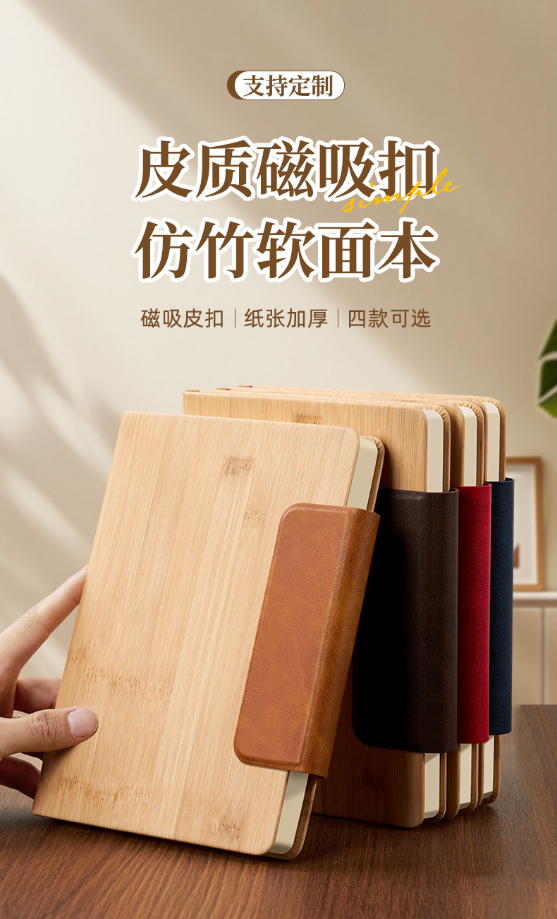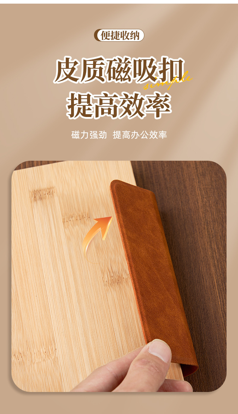 Cuaderno de cuero de bambú de negocios Cuaderno de escritorio transfronterizo Personalizado LOGO Cuaderno de conferencia PU Cuaderno de mano