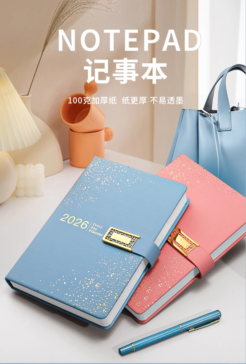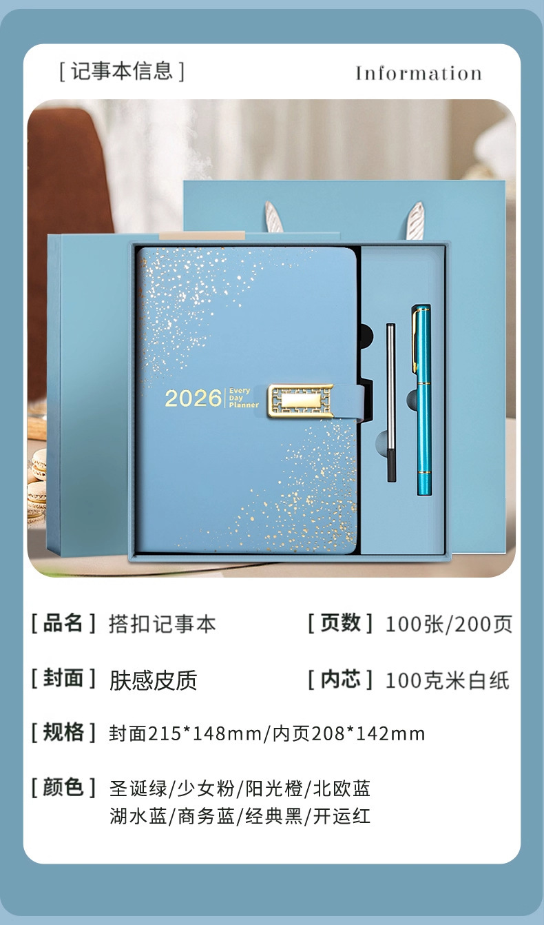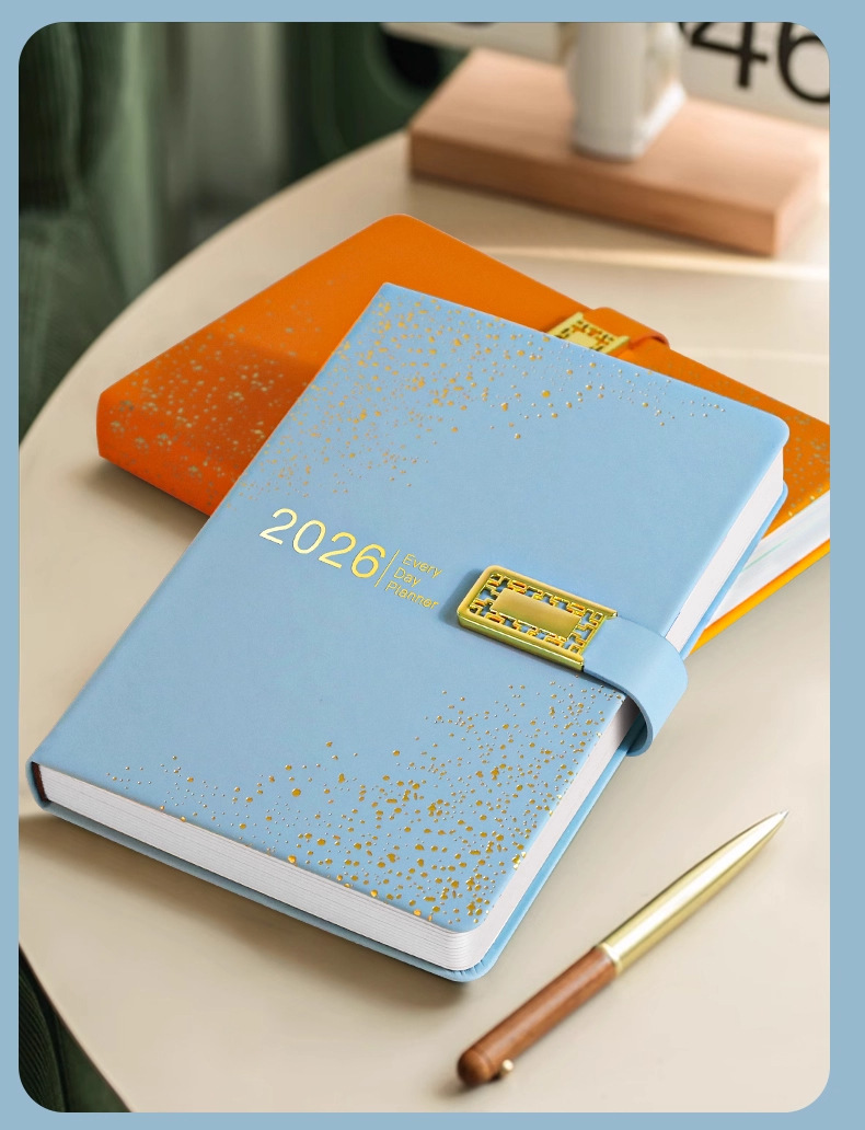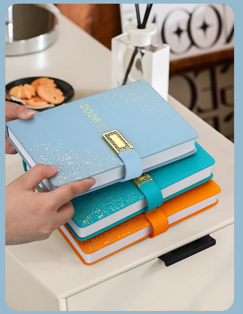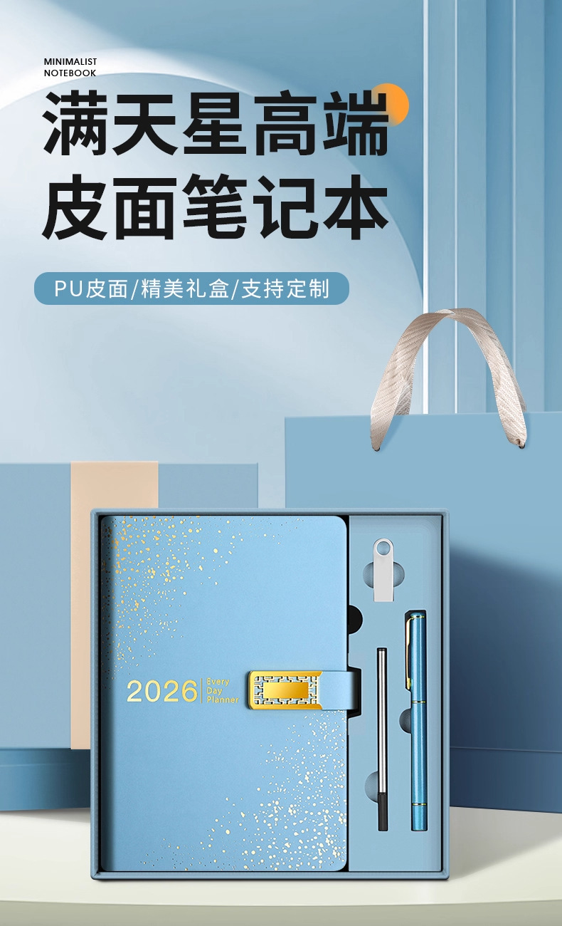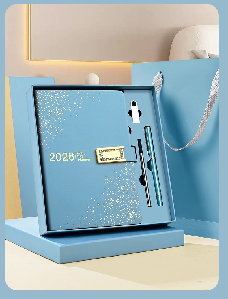 2026 nuevo calendario hermoso conjunto de caja de regalo de alto valor de la cara llena de estrellas cuaderno de notas cuaderno de diario puede imprimir logotipo