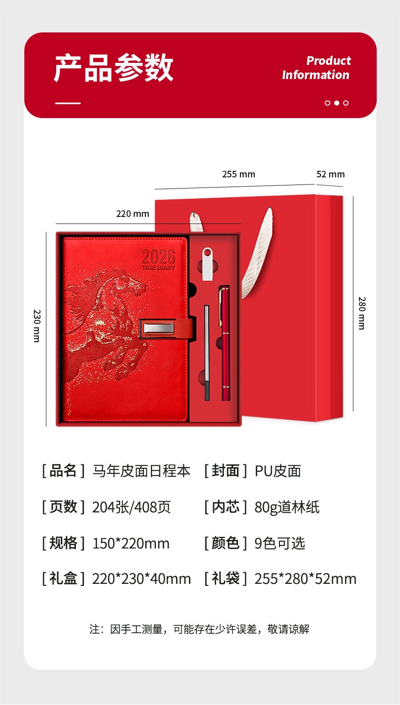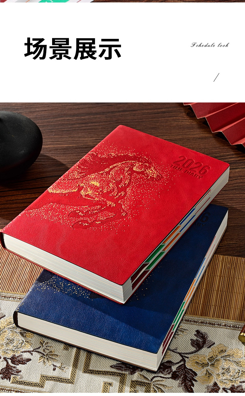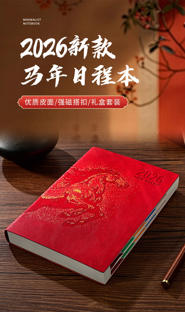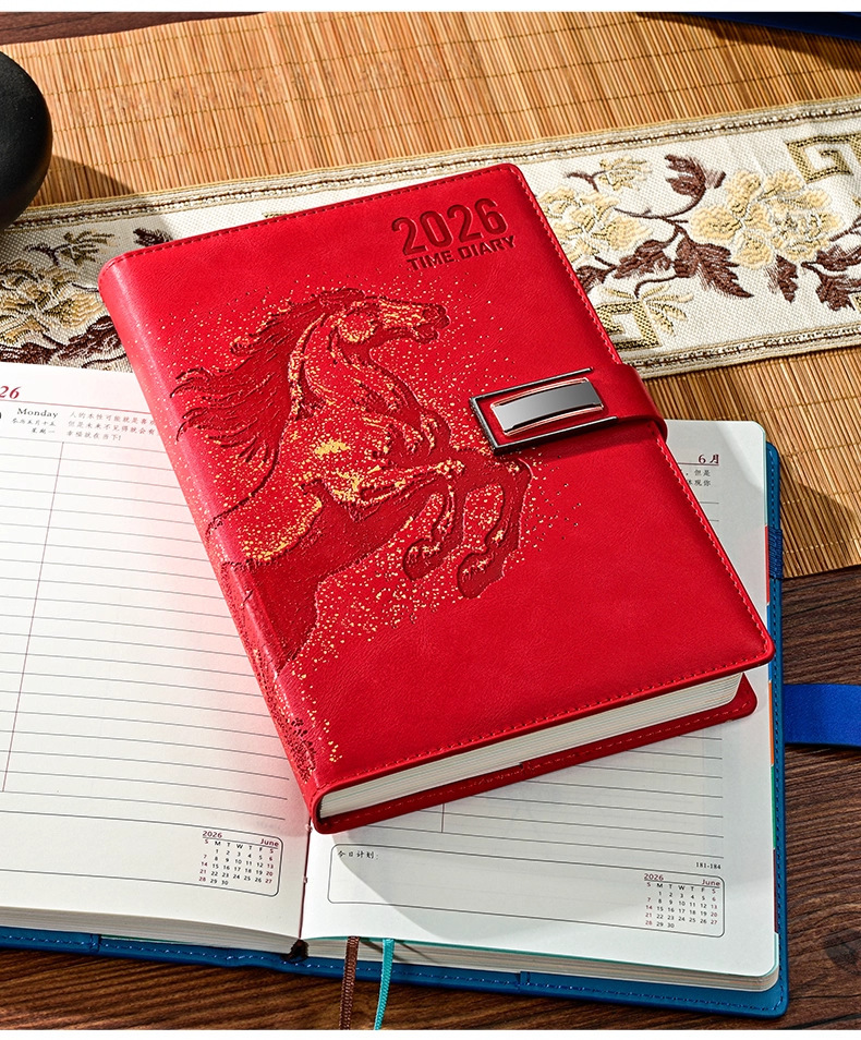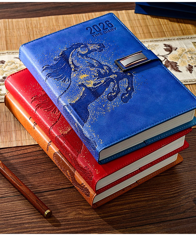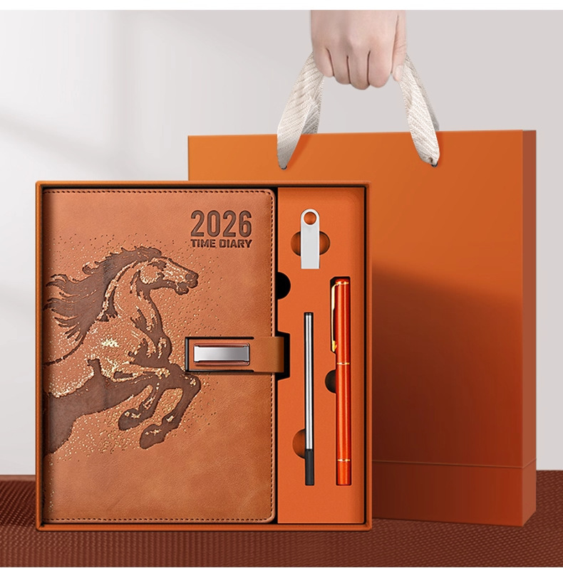 26 nuevo calendario puede imprimir logotipo de año de caballo estampado caja de regalo set cuaderno de cuero de alta calidad