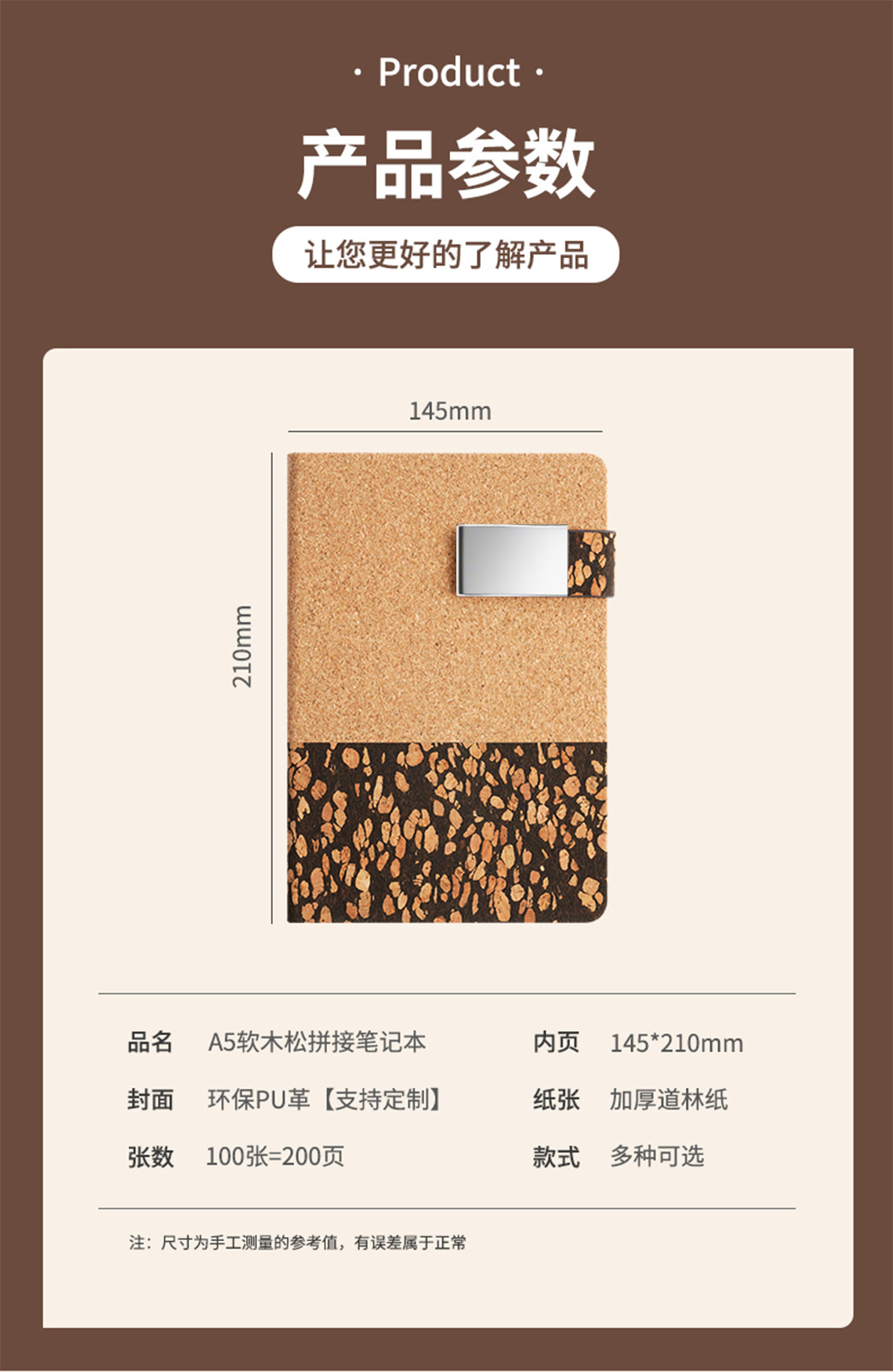 Cuaderno de corcho ecológico doble personalizado a5 molas de café cuaderno de negocios cuaderno de notas papelería transfronteriza al por mayor