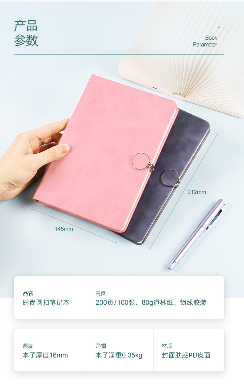 Cuaderno de notas de botón redondo simple y fresco personalizado A5 diario de oficina de negocios engrosado cuaderno de notas de línea horizontal puede imprimir logotipo