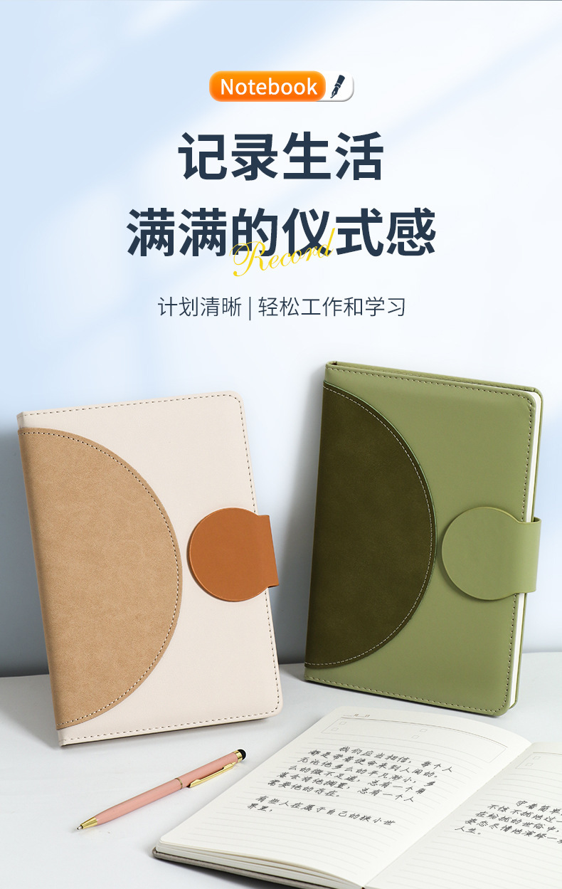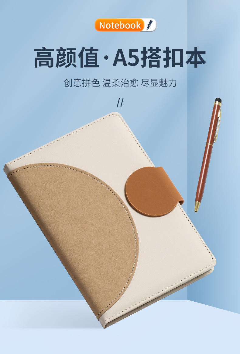 A5 cuaderno de negocios personalizado logotipo de alto valor cosmético agujero redondo cuaderno cuaderno de mano cuaderno horizontal al por mayor