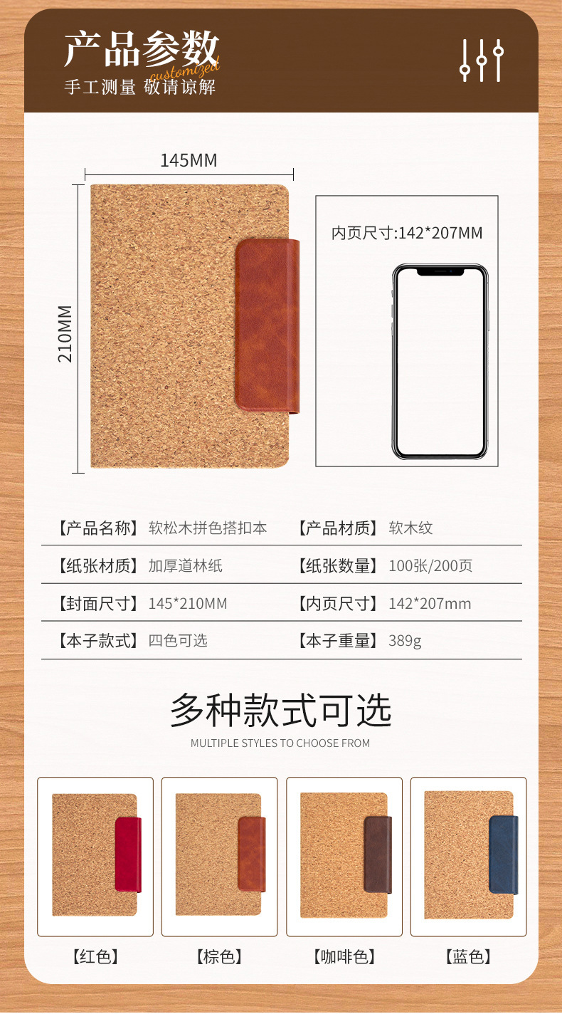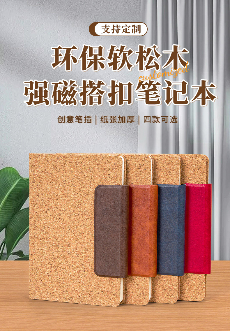 Cuaderno de grano de madera blanda, cuaderno grueso, hebilla magnética de oficina de negocios personalizada a5 bloc de notas, logotipo impreso, papelería al por mayor