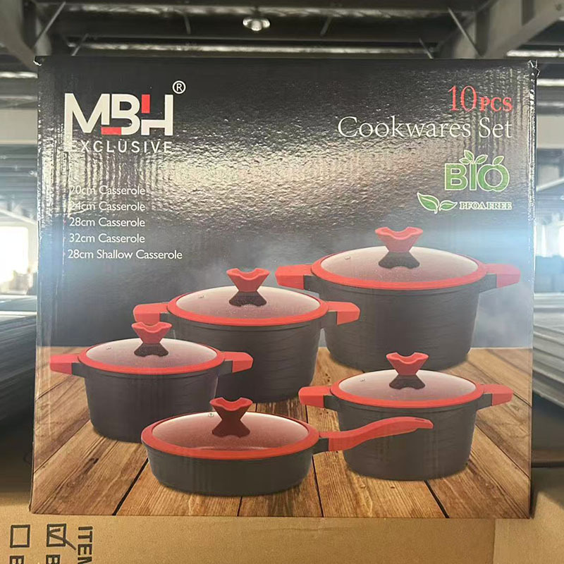 Juego de ollas de comercio exterior de 10 piezas, juego de ollas antiadherentes de piedra médica, juego de aluminio, juego de ollas de sopa combinado, exclusivo transfronterizo
