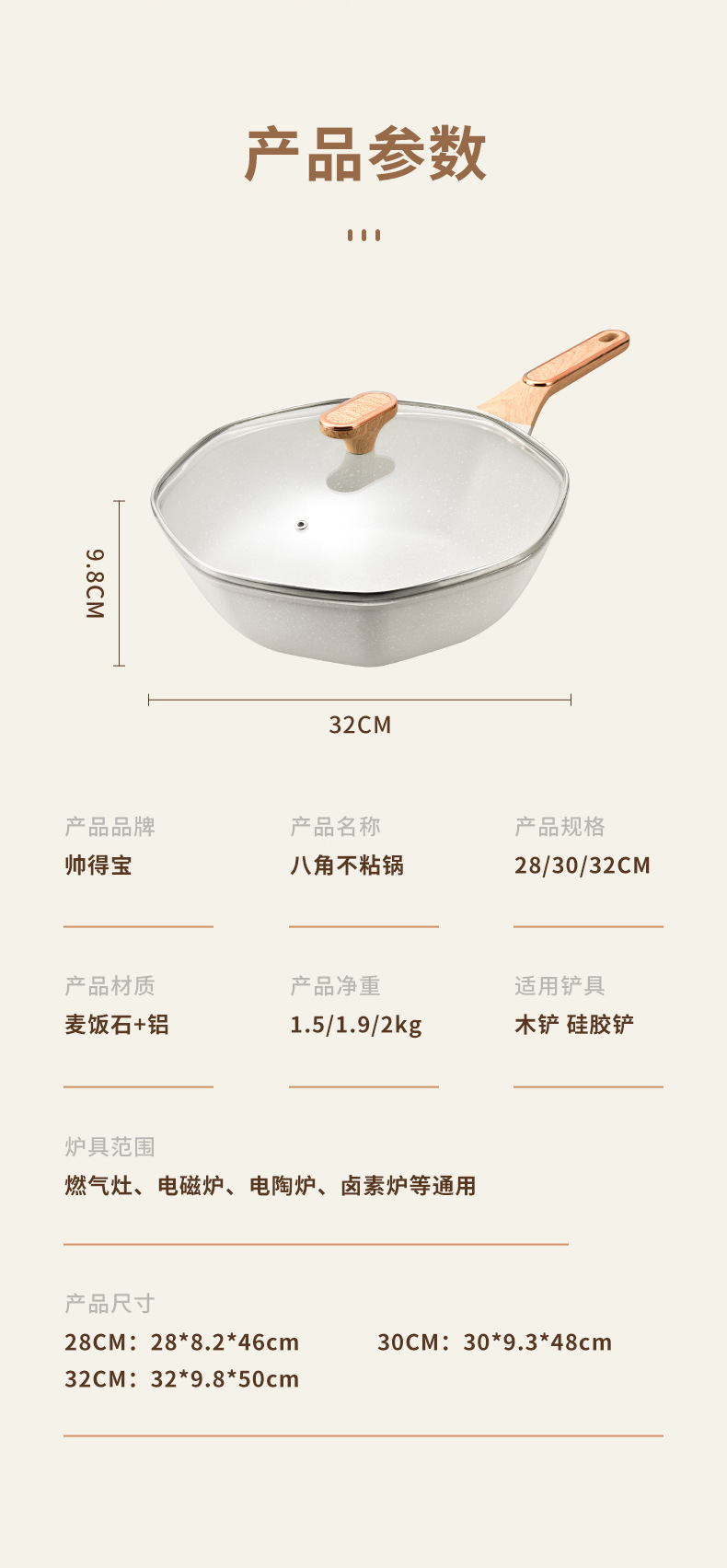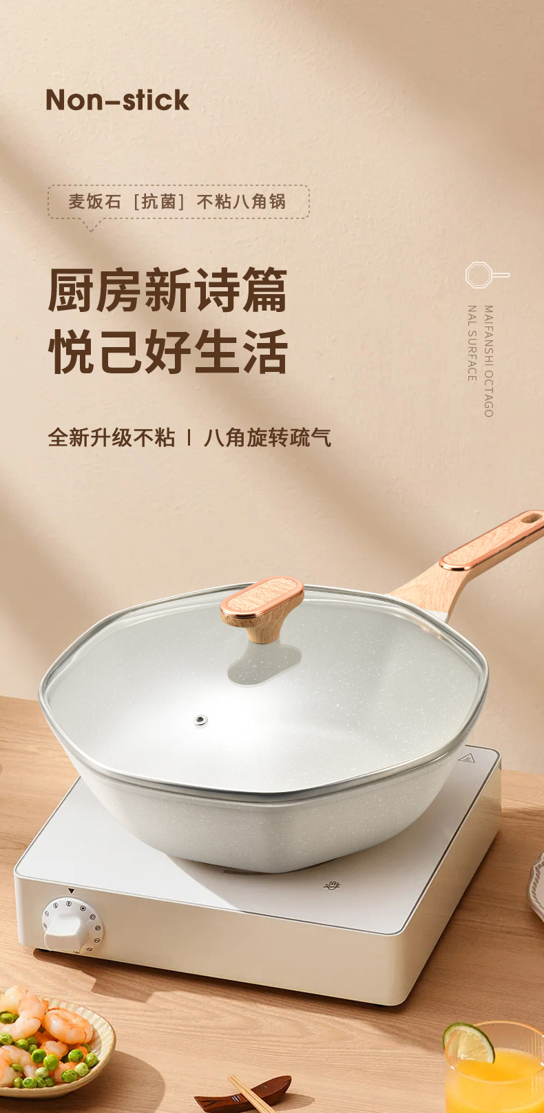 Shuaidebao octogonal wok maifan piedra antiadherente wok no-lampblack hogar pan Die Casting wok al por mayor