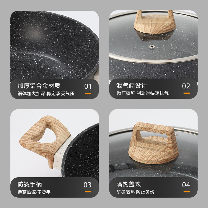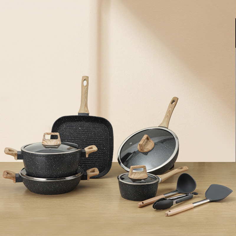 Olla de piedra médica transfronteriza Juego de 5 piezas Olla antiadherente Olla de sopa Olla de cocina Wok Wok Olla de leche para freír Olla de cocina