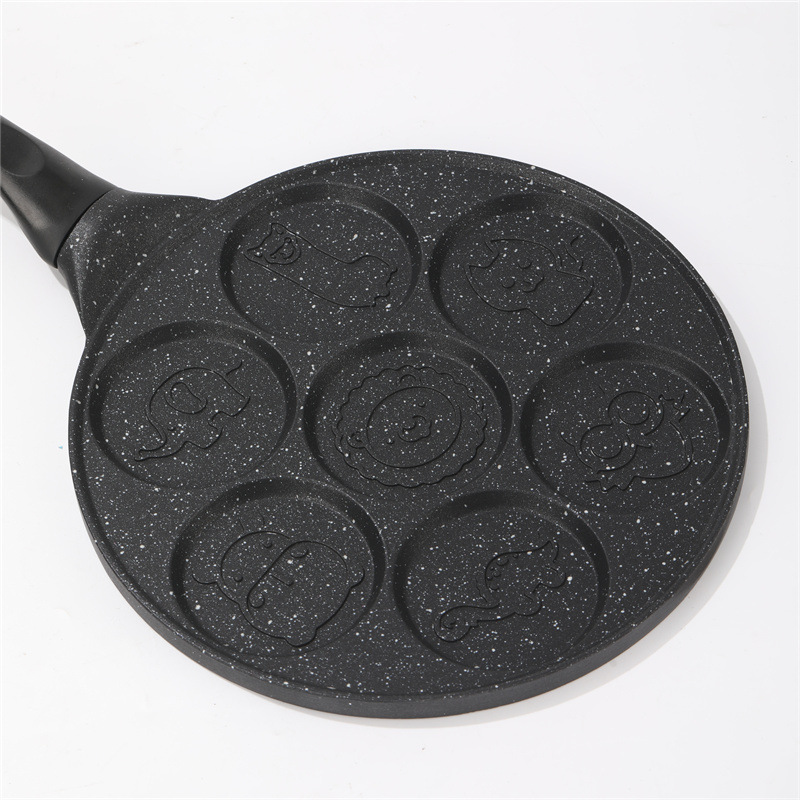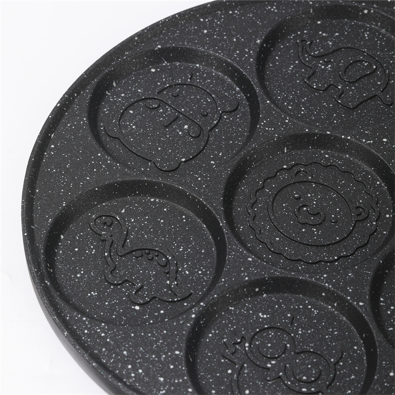 Fabricantes de comercio exterior dibujos animados siete agujeros desayuno plato de asado huevos hamburguesas molde waffle para bebés alimentos suplementarios sartén